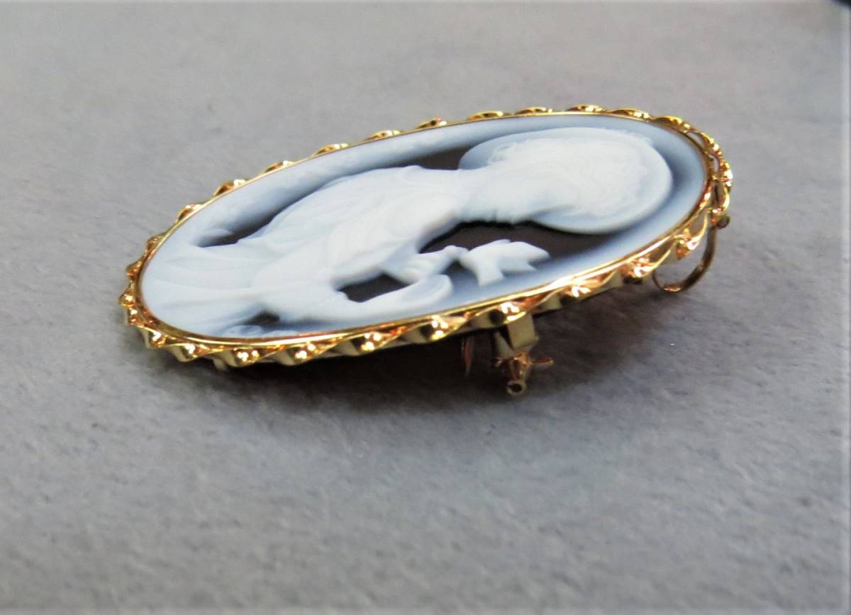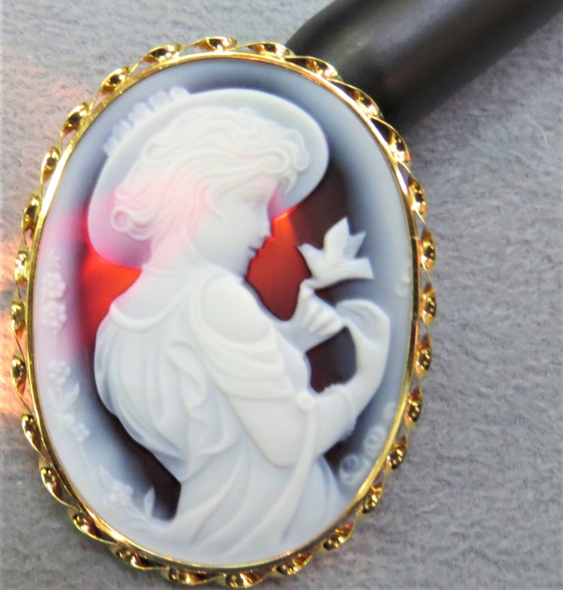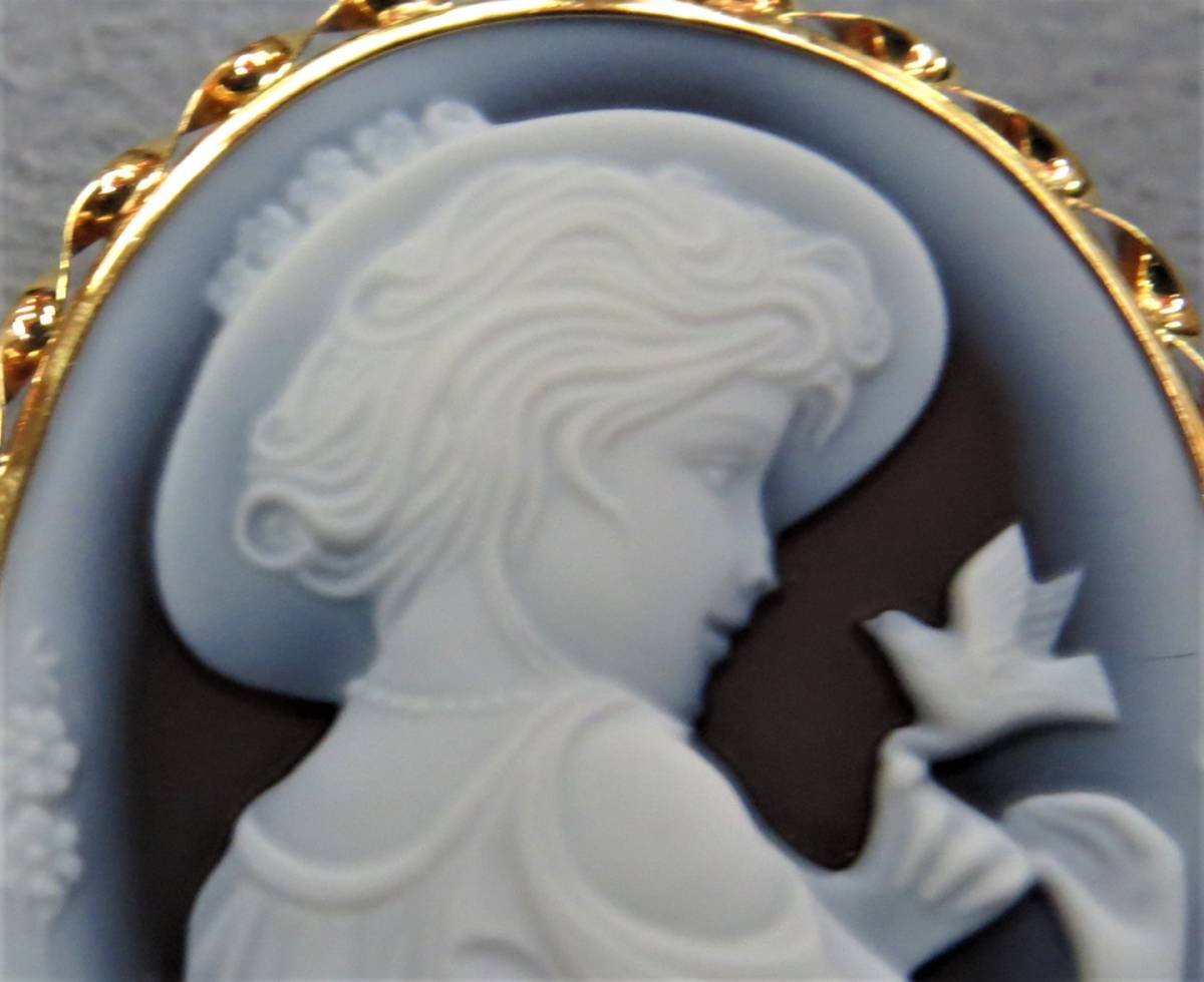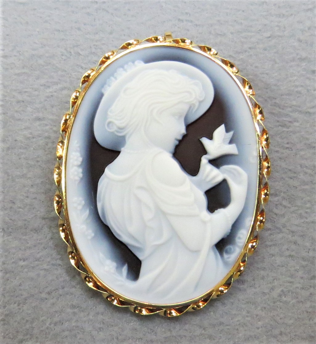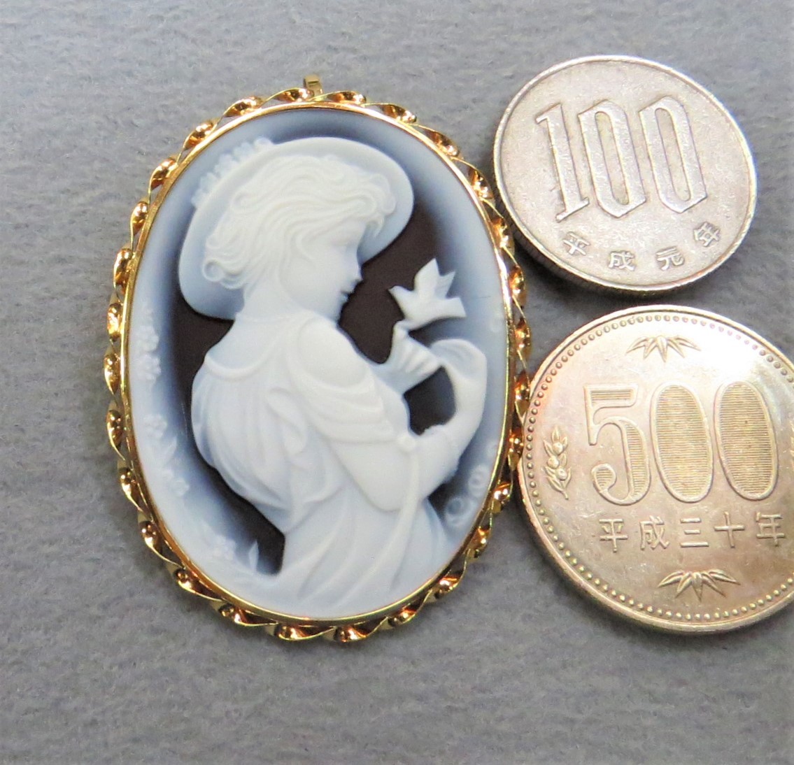 ♪上質の【天然:3層カラー・メノウ】(白色・青色・紅色の3色の3層)に、気品のある女性像を、精密・精細・芸術的に、彫った