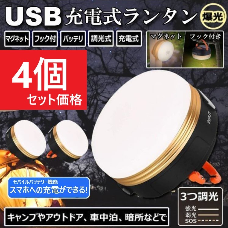【4個セット】最新LEDランタン USB充電式 1800mAh キャンプ アウトドア ライト 防水