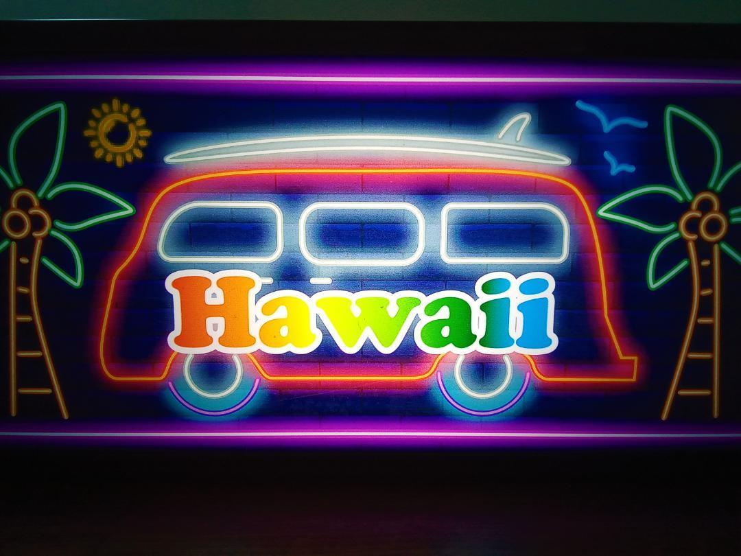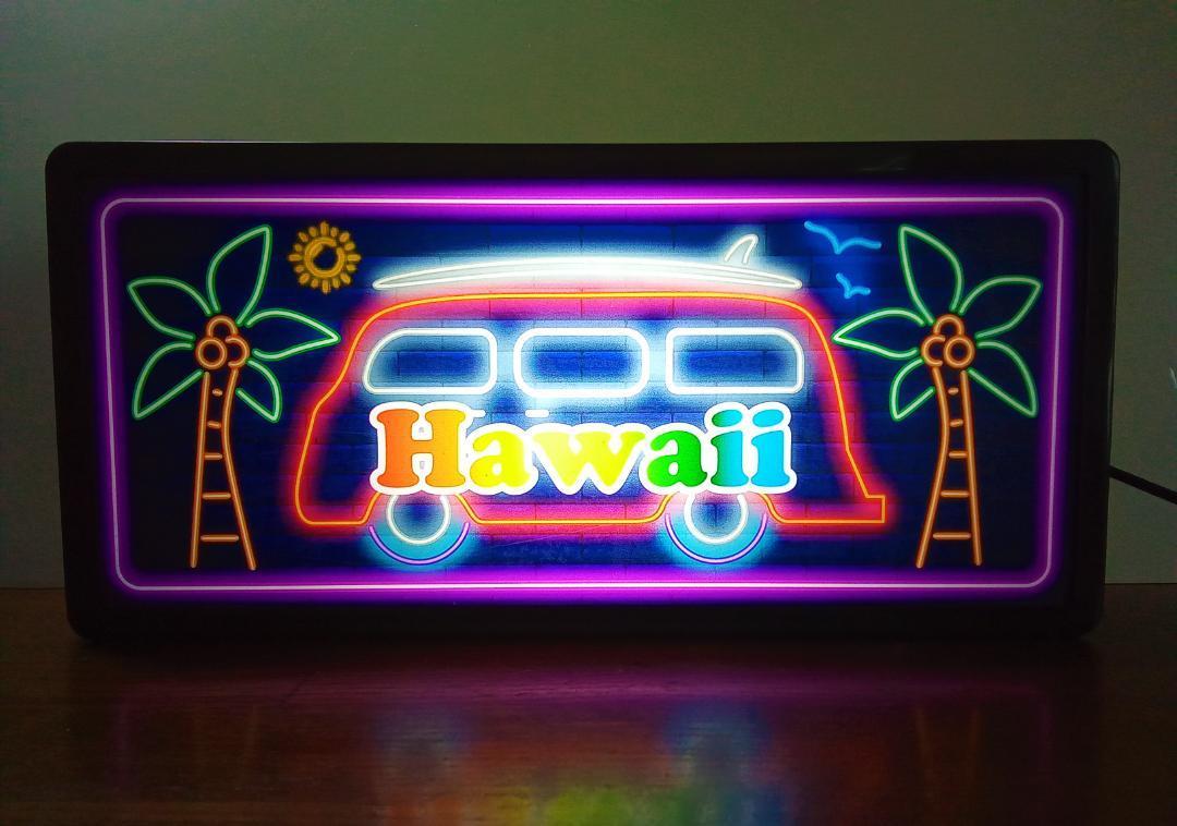 ハワイ サーフィン ワーゲンバス ヤシの木 ビーチ 虹 グラデーション アメリカン サイン 看板 置物 雑貨 HAWAII BUS LED2wayライトBOX