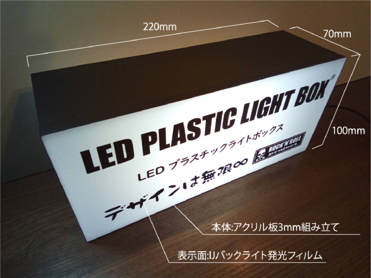 ★LEDプラスチックライトBOXの本体が豪華になって生まれ変わりました★ USB12Vジャック・付属アダプターで家庭用電源でも光る2通りの電源使用可能なコンパクト看板ライトBOXです。 本体(PLA樹脂組立)・表示面(IJバックライト発光フィルム)で屋外看板に基づいた施工(本品屋内仕様)の縦10センチ×横20センチ×奥行き5センチでコンパクトサイズ、 電源コード約1mで直結になっておりますので、スイッチが必要な方は、市販のUSB対応ON/OFFスイッチ付延長コードをご利用下さい(別売り※付属されません) 旧型とは異なりアクリルプラスチック製でガッチリとした作りでありながら、とても軽量ですので、店舗・お部屋・ガレージ・書斎にと多様に対応できる本体となっております。                 お店やお部屋のインテリアに・・話題のネタに・・プレゼントなどに最適です。 ※本体は傷が付きやすく検品は行っておりますので、製作過程の多少の傷は予めご了承下さい。その都度、完全受注生産ですのでご購入後のお客様ご都合キャンセルはできません。不良品に関しては、交換・返金対応しておりますので宜しくお願い致します。 ※電池式に変更(電池BOX付属)もできます。大きいサイズご希望などございましたらコメントお待ちしております。 自社製造製品
