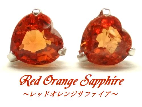 天然レッドオレンジサファイア4ミリハートのスタッドピアスです。