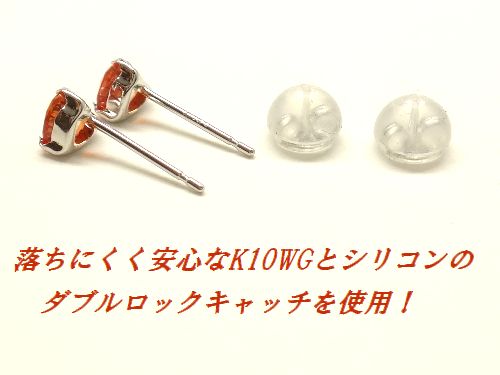 キャッチは、ホワイトゴールドとシリコンのダブルキャッチになっているので、落ちにくく安心してお使い頂けます。