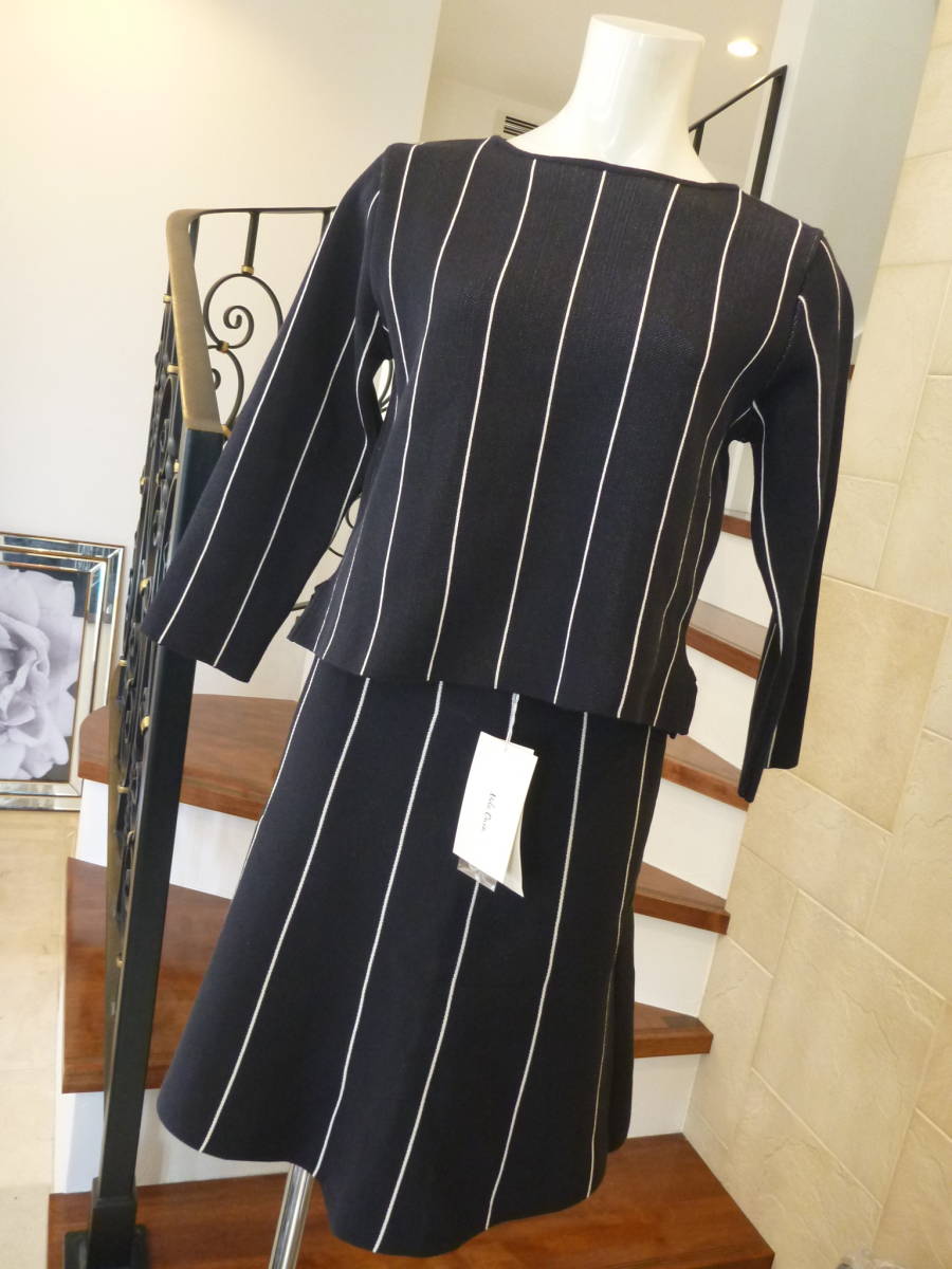 1.8万 新品 Mila Owen(ミラ オーウェン)★ 日本製 紺×白 厚手ニット 上下セットアップ 0 1 M相当