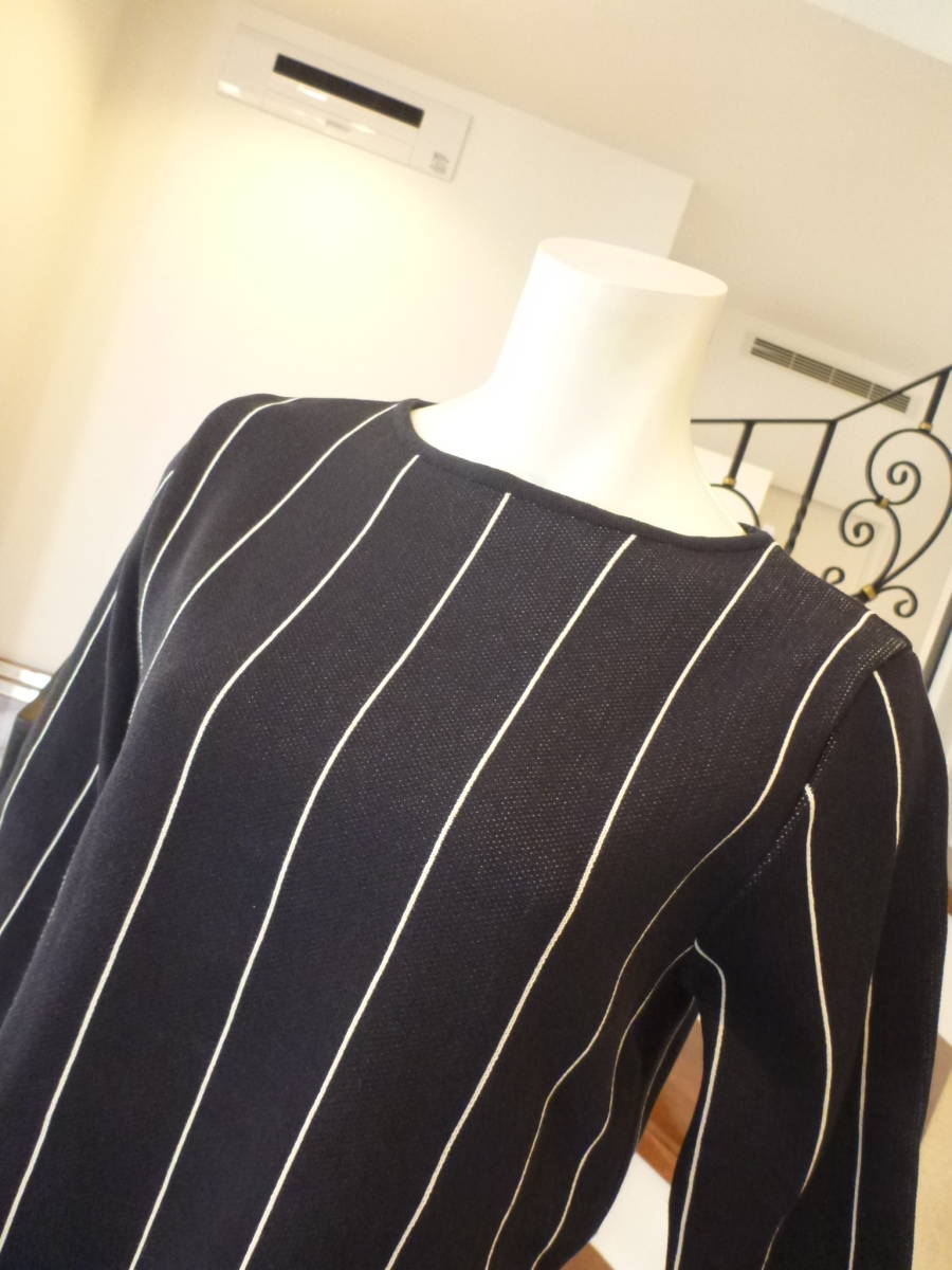 ◆日本製 紺×白 厚手ニット 上下セットアップ
