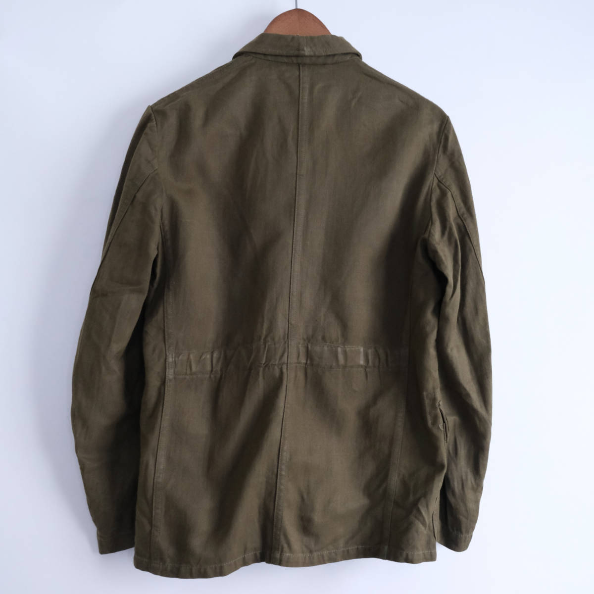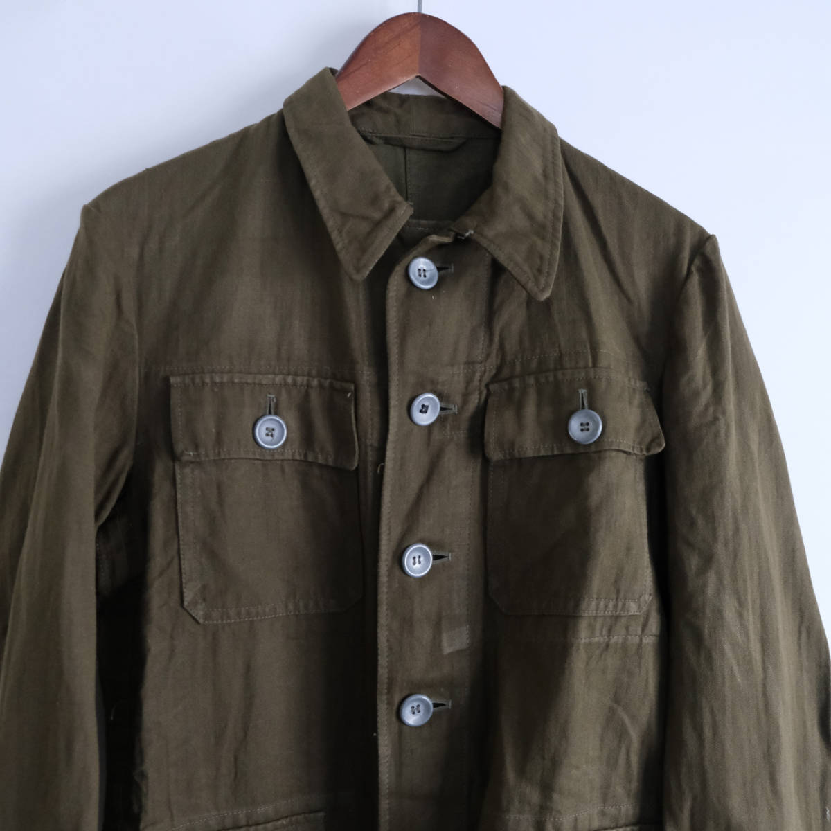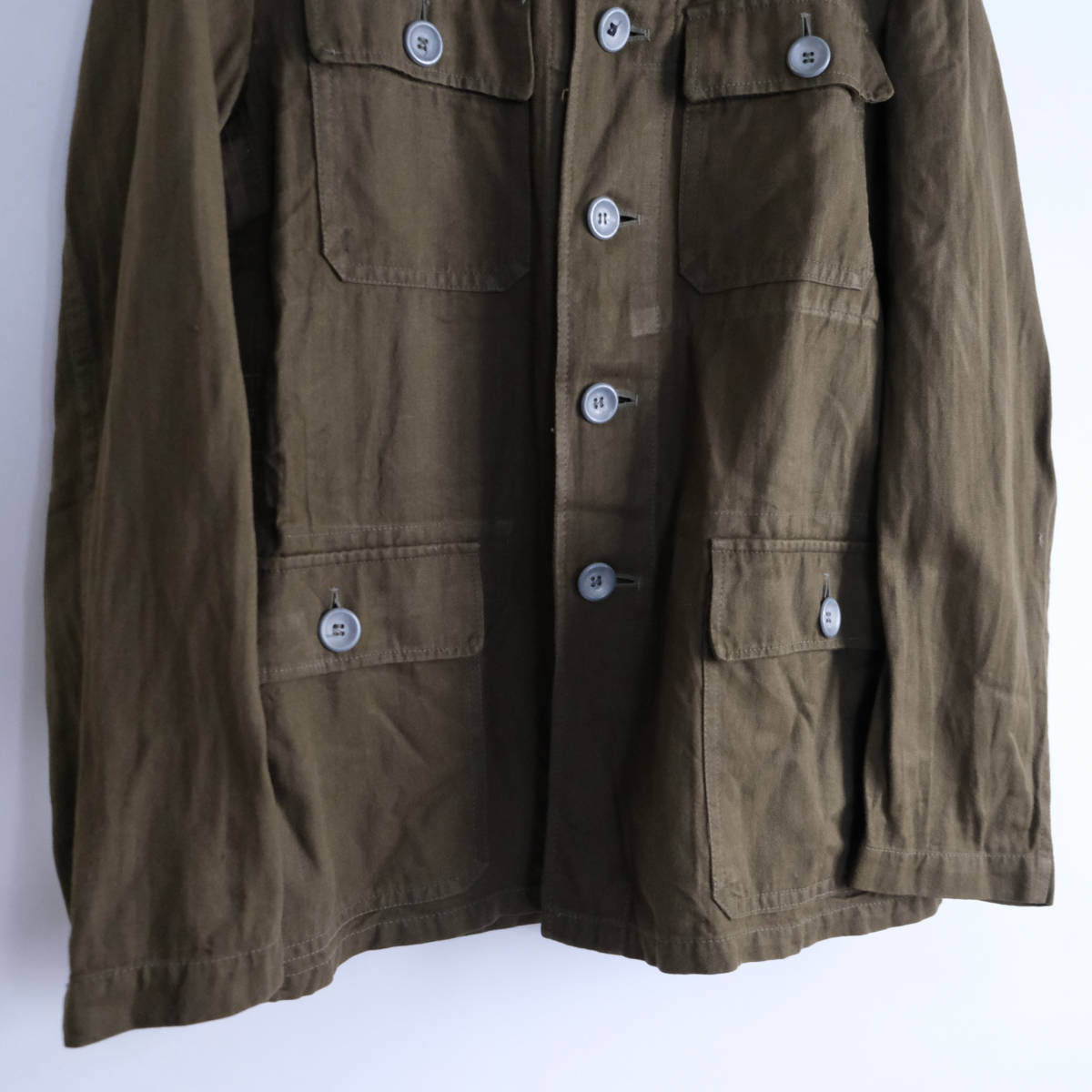 【 ヨーロッパ ビンテージ 】コットン リネン HBT ジャケット カバーオール / オリーブ / 46 / ミリタリー フランス ワーク 軍