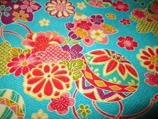 | 【京わぎれ】正絹 友禅染はぎれ てまり柄 ブルー地 サヤ型地紋紋綸子生地 1m② | ||||