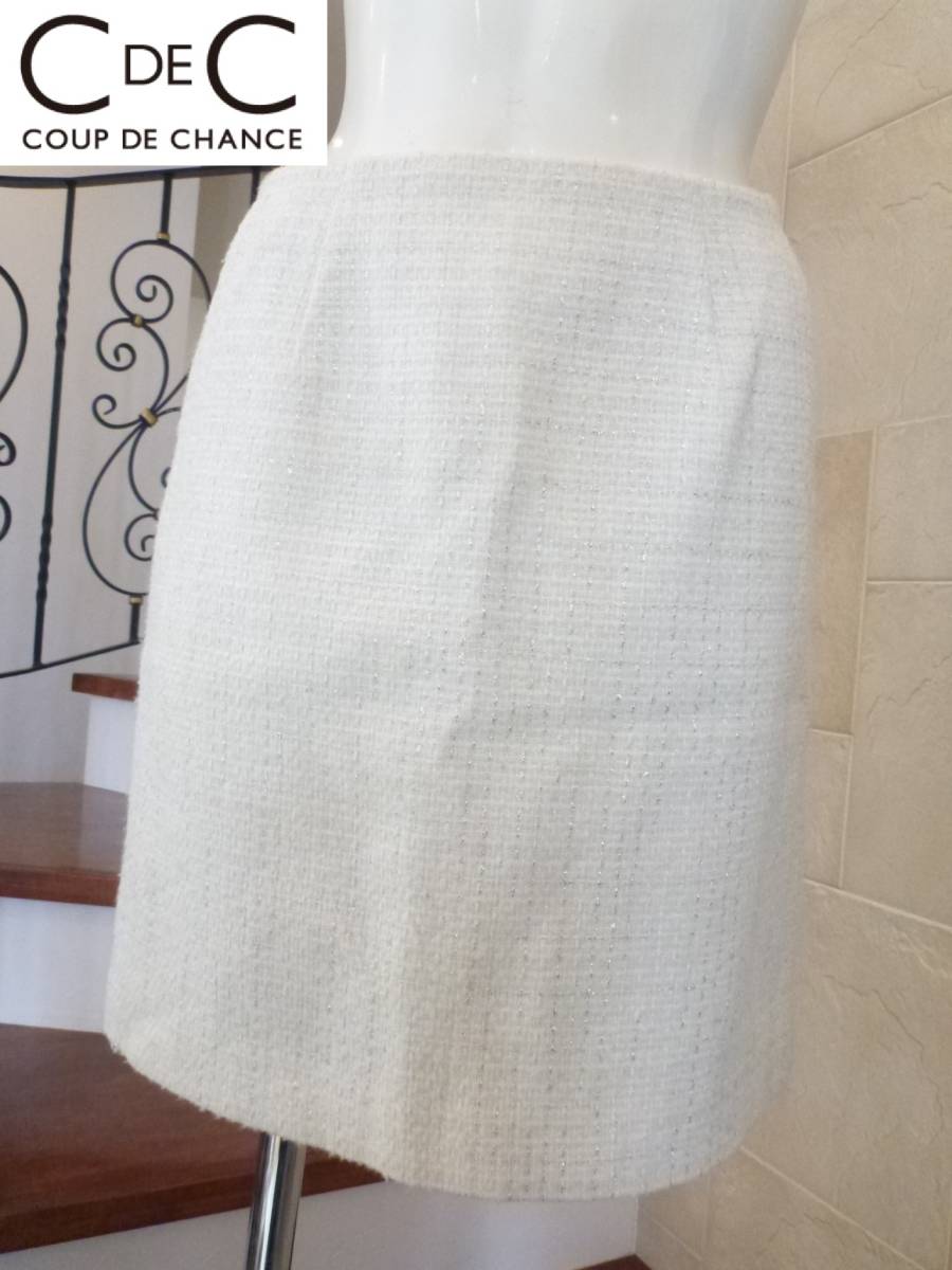 美品 COUP DE CHANCE クードシャンス ★白 ツイード スカート 36 S相当