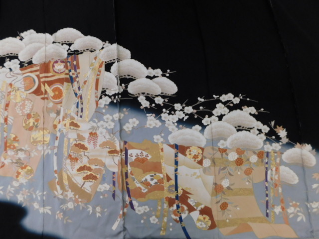 〔楽布特選〕P15240 手描き友禅黒留袖 未仕立て新古品 bvt