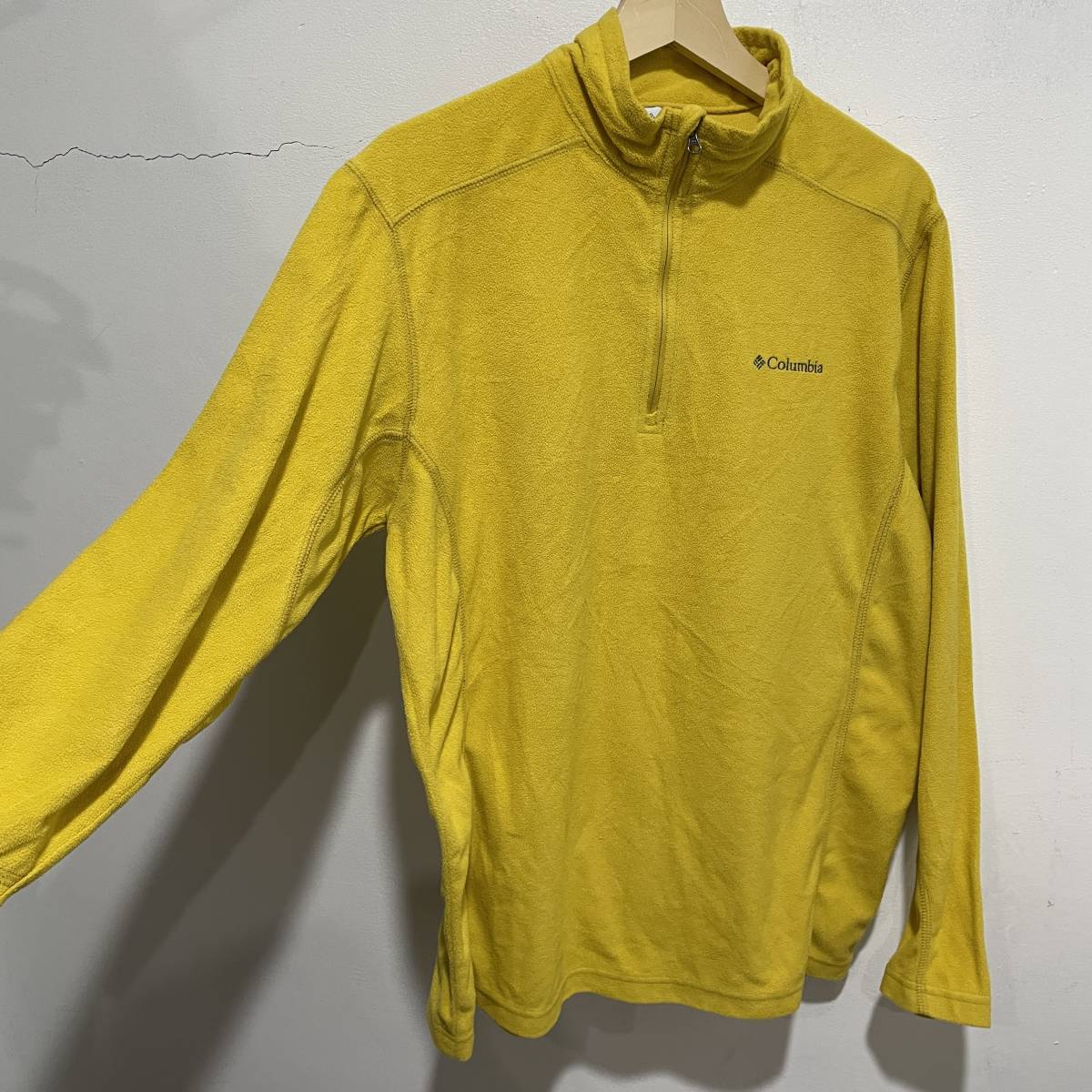 コロンビアのハーフジップフリースになります。綺麗なイエロー系のカラーがオシャレです。薄手のタイプですのでインナーにも最適です。一枚でもレイヤードにもおすすめです。この機会にぜひ。