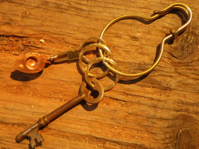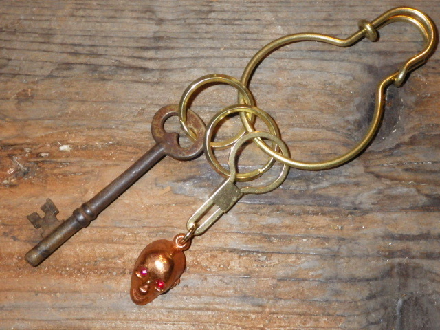 真鍮のキーリングに50’Sビンテージのスカルのチャームや真鍮パーツ、ビンテージ・キーを使用し製作した、カイゾクソウコ・カスタム・キーリングです♪