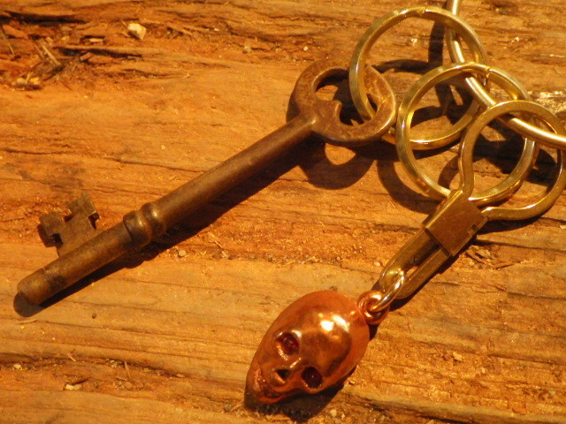 シンプルながらもビンテージのスカルがたいへんCOOL、キーリング本体もジェイル(昔の刑務所の看守が仕様してるような)仕様でCOOLです♪