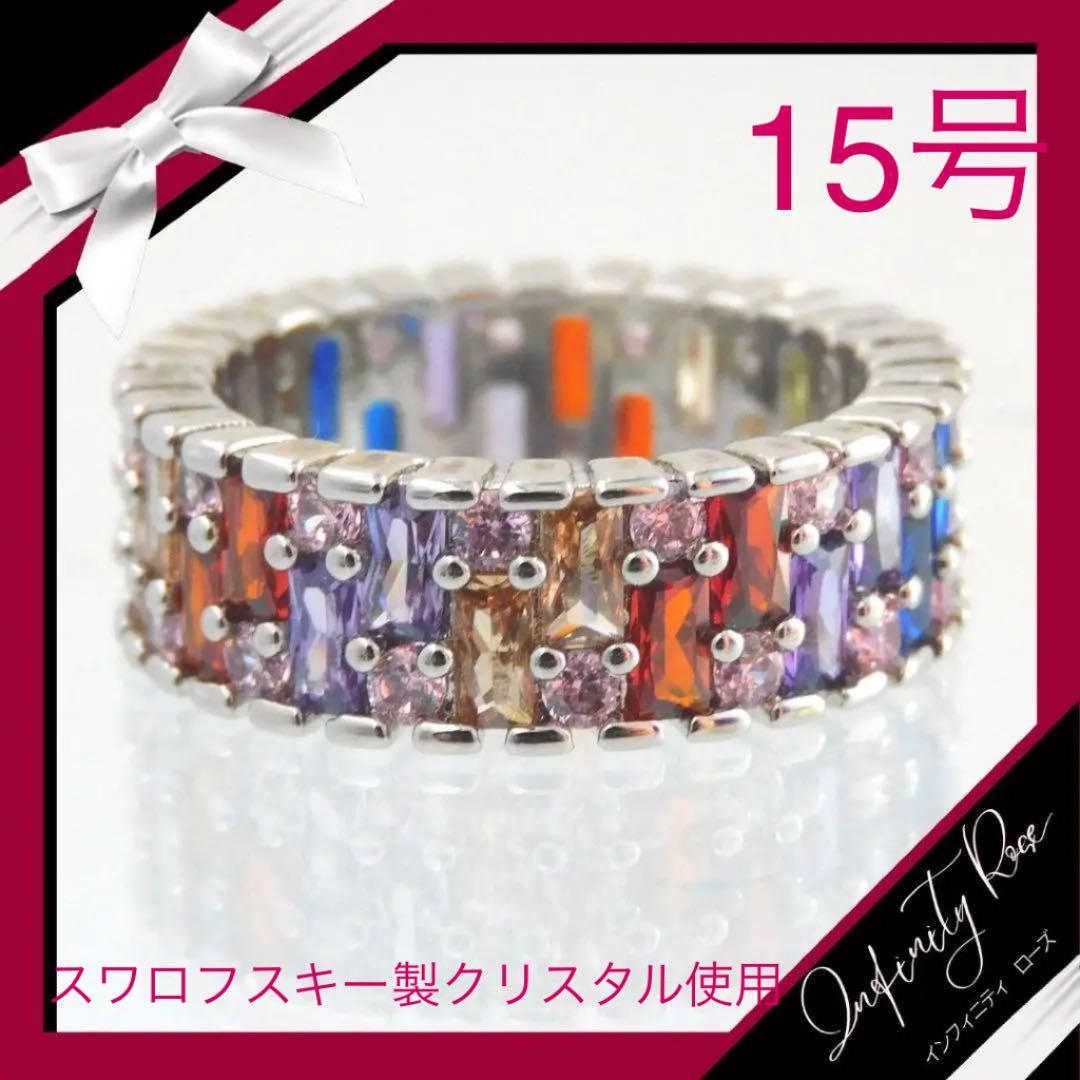 (1044)15号 高品質無数の輝きピンク系 全周クリスタル リング 指輪