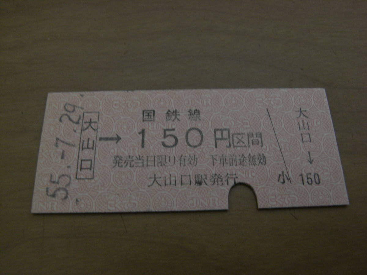 山陰本線 大山口→国鉄線150円区間 昭和55年7月29日 大山口駅発行