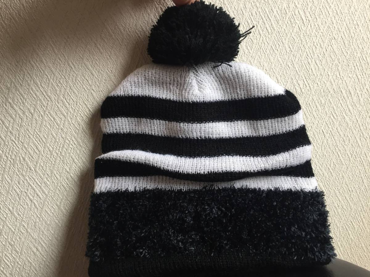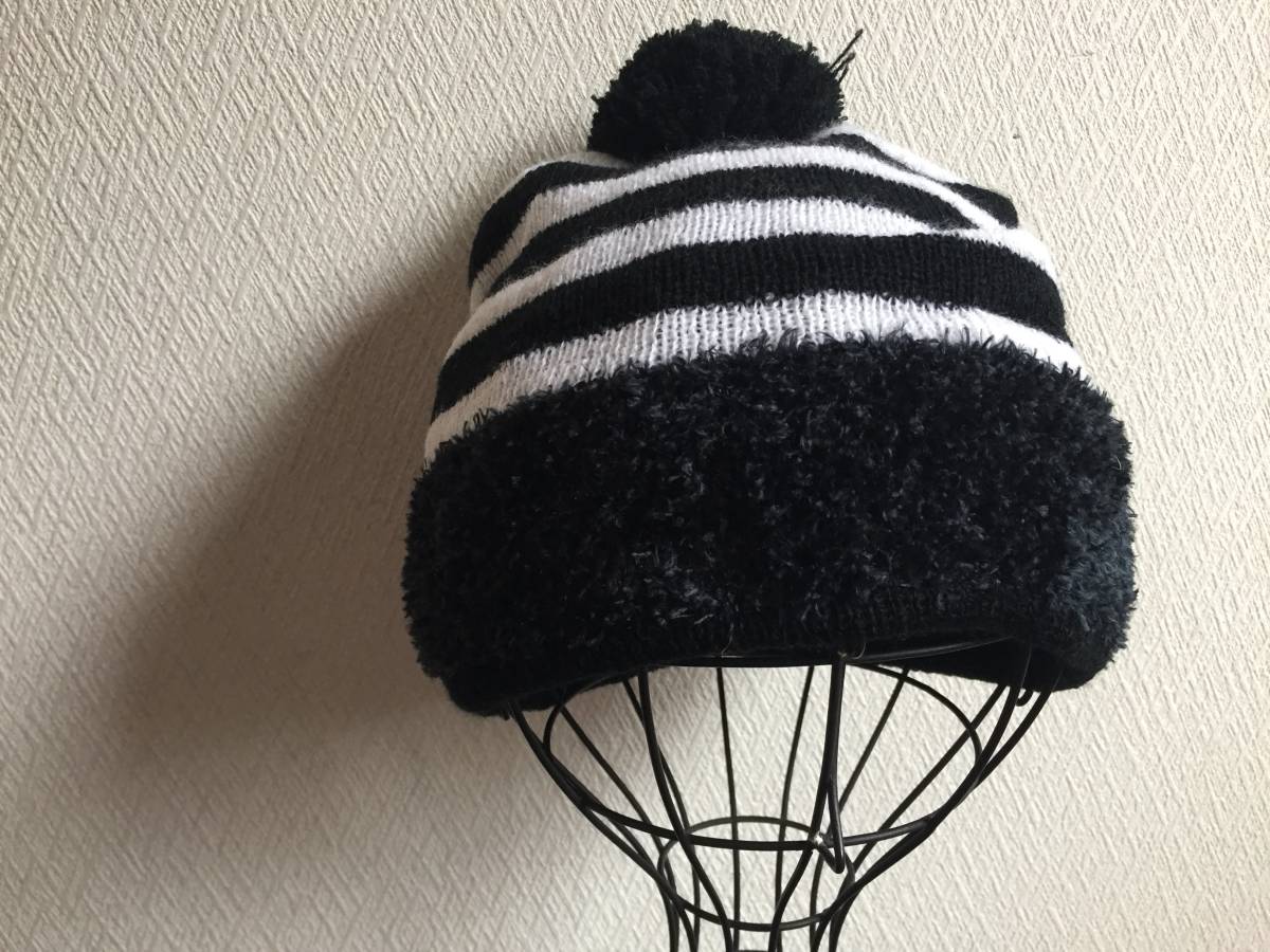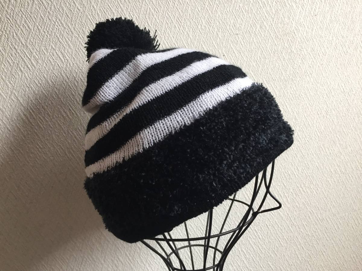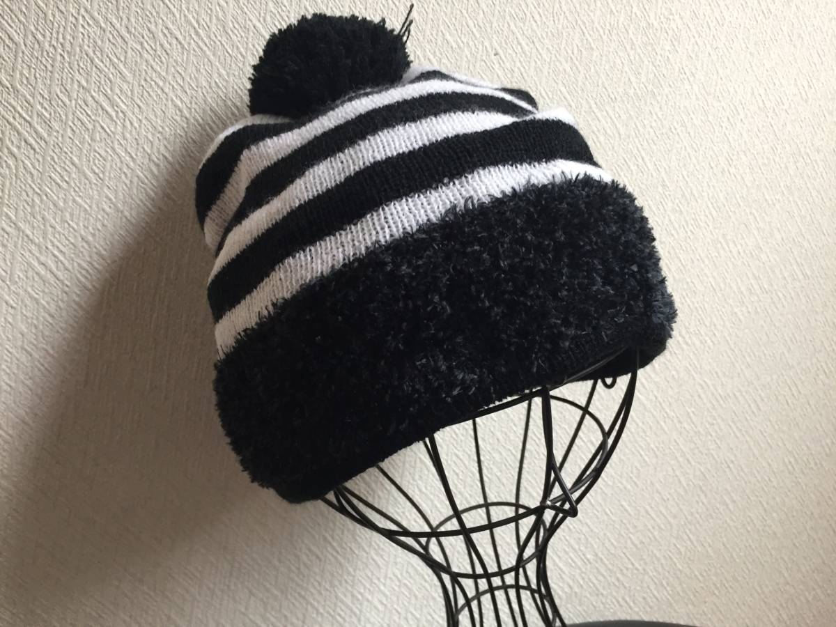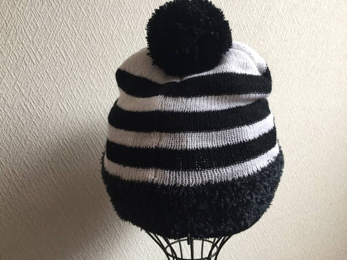 黒×白のボーダーが可愛いポンポン付きニット帽です。