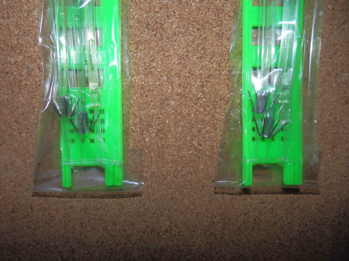 | ⑦保管未使用品★2個セット あわ入り イカサビキ ブランコ仕掛け イカ角14cm4本 幹糸5号 間120cm 枝5号2cm グリーン | |||