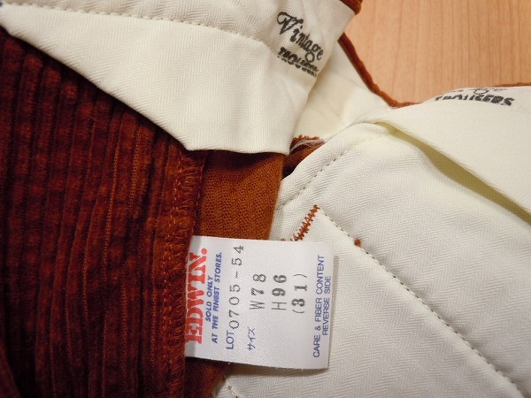 o884★エドウィン ツータック 太畝 コーデュロイパンツ★W31 赤茶色系 コーズ コールテン★即決★