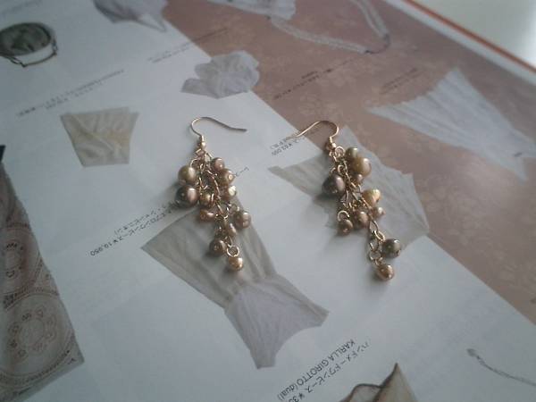 シック・フレンチの定義・・シリーズです♪パールを集めて・・個性的なブロンズ・ベージュの淡水パールを集めたピアスです♪シックな色とデザインがキュートな表情です♪淡水パールは4ミリから8ミリ位までのポテトやバロックなど大きさ違い、デザイン違いです♪全長7センチ位です♪イヤリングにも変更出来ます♪お揃いのネックレスやブレスレットも出品しています♪♪シンプルで飽きのこないいつまでも着けられるデザインを考えて作りました!ハンドメイドをご理解頂いてノークレーム、ノーリターンでお願いします