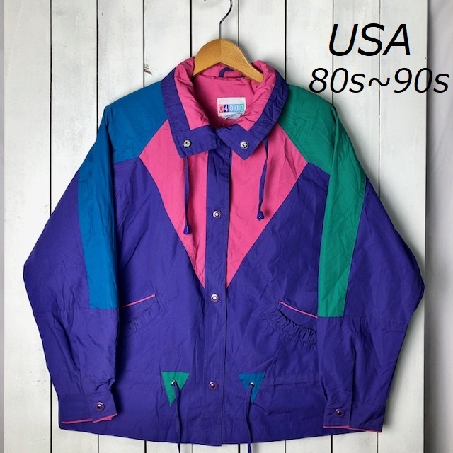 USA古着 80s~90s カラフル マウンテンジャケット 大きめM~L オールド ヴィンテージ アメリカ古着 ブルゾン アウトドア マウンテンジャケット ●74