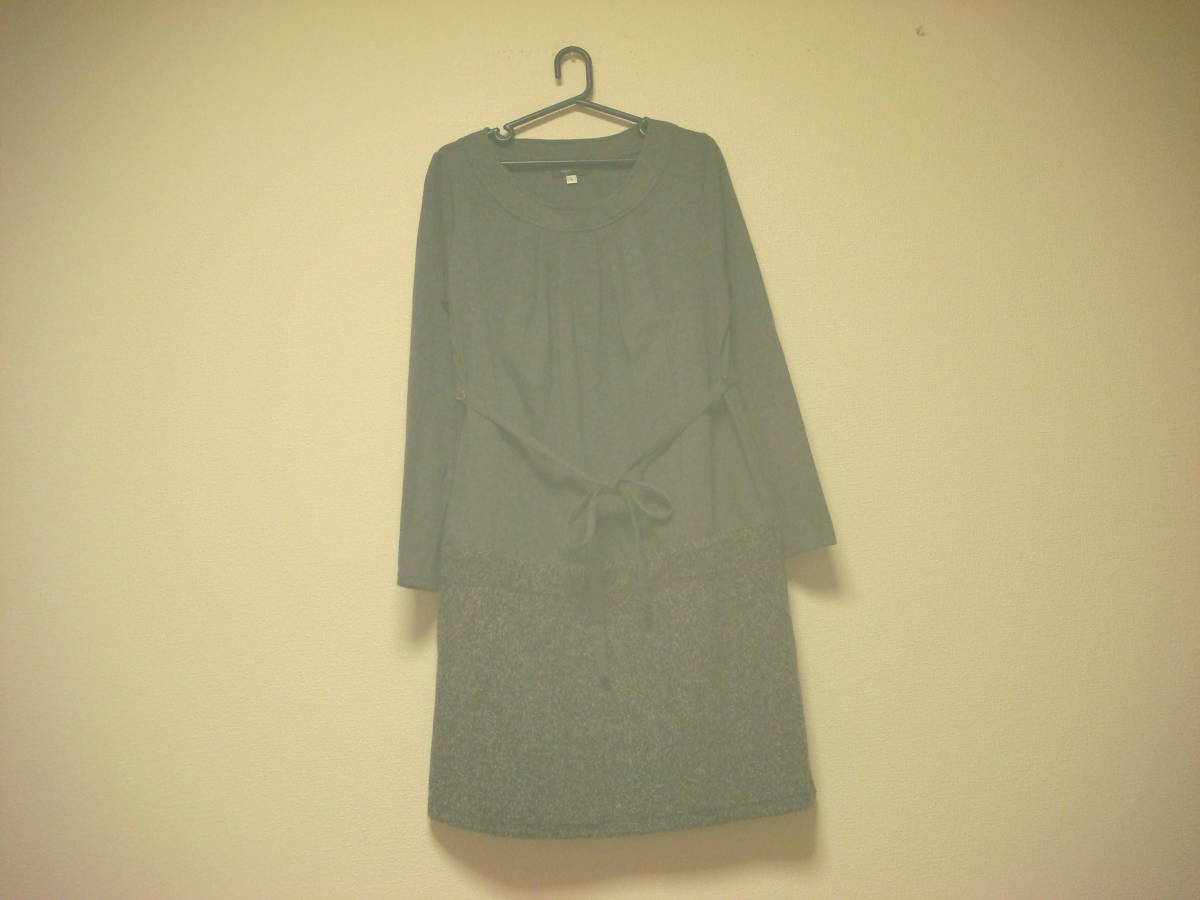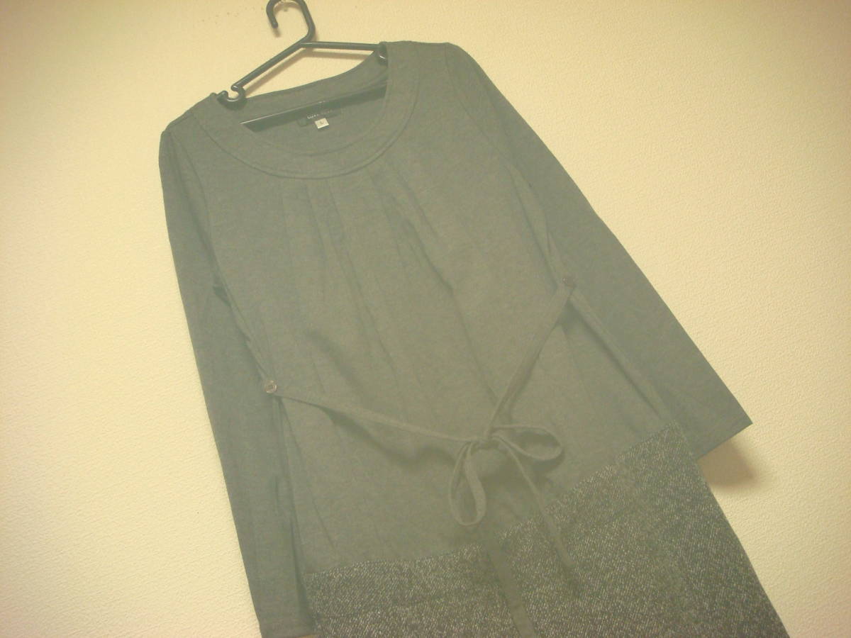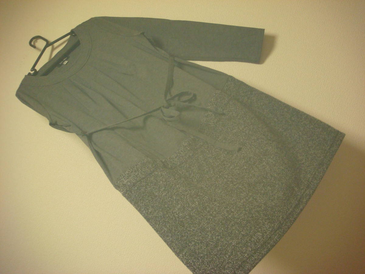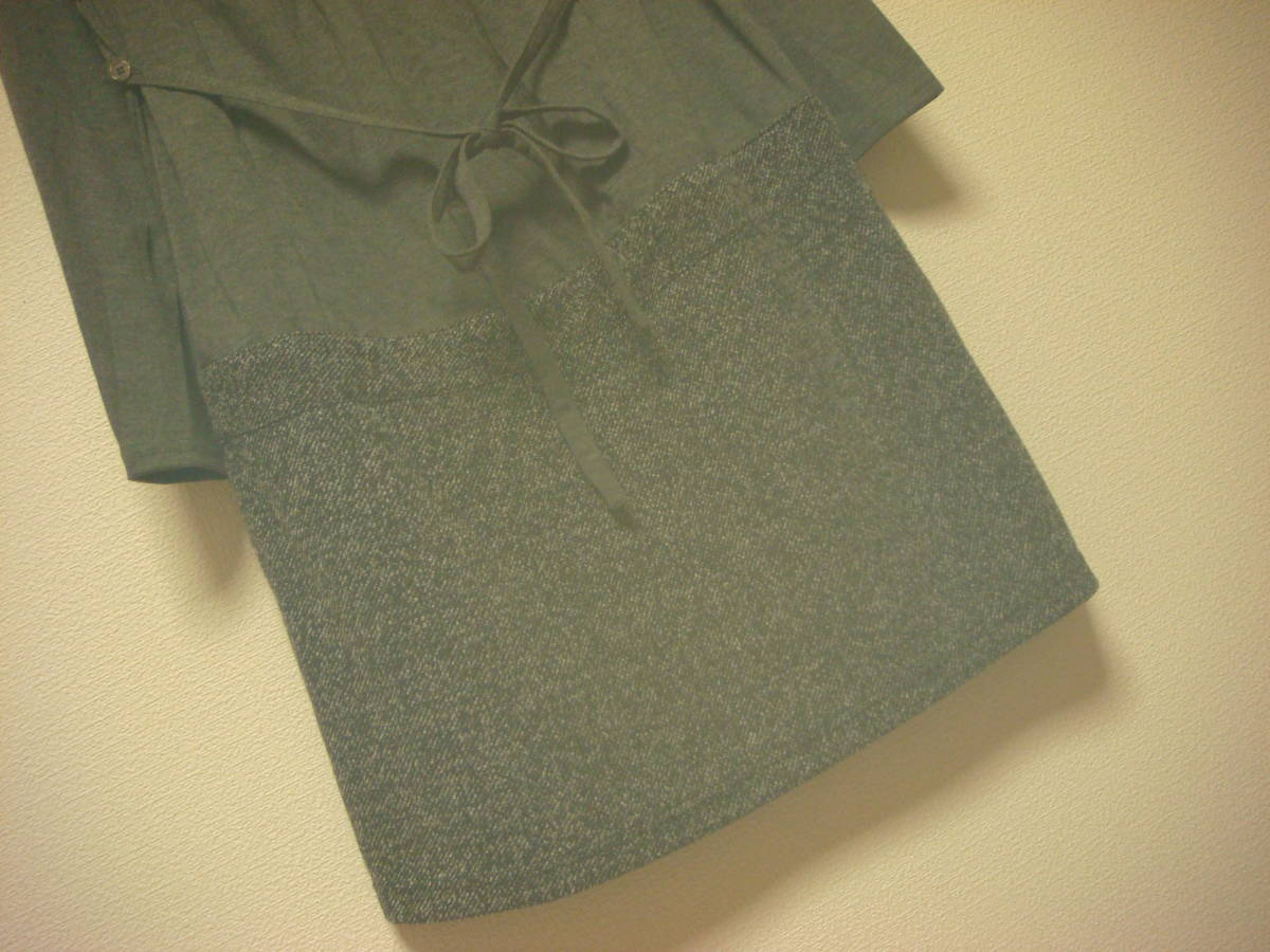 マタニティ バイカラー ツイード風切り替え おリボン付き 授乳服 ワンピース 授乳口付き グレー L 美品