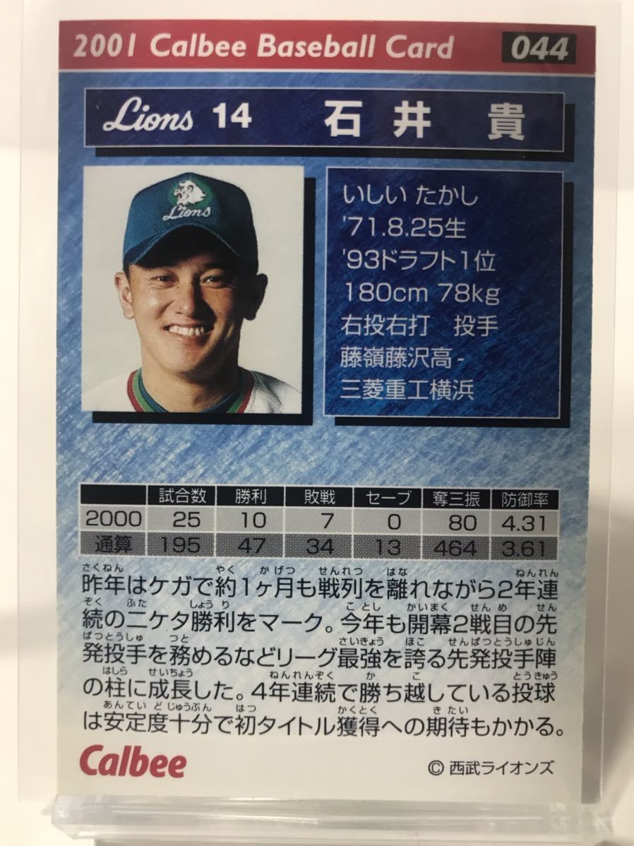 石井貴 44 カルビープロ野球チップス 2001 ノーマルカード 西武ライオンズ
