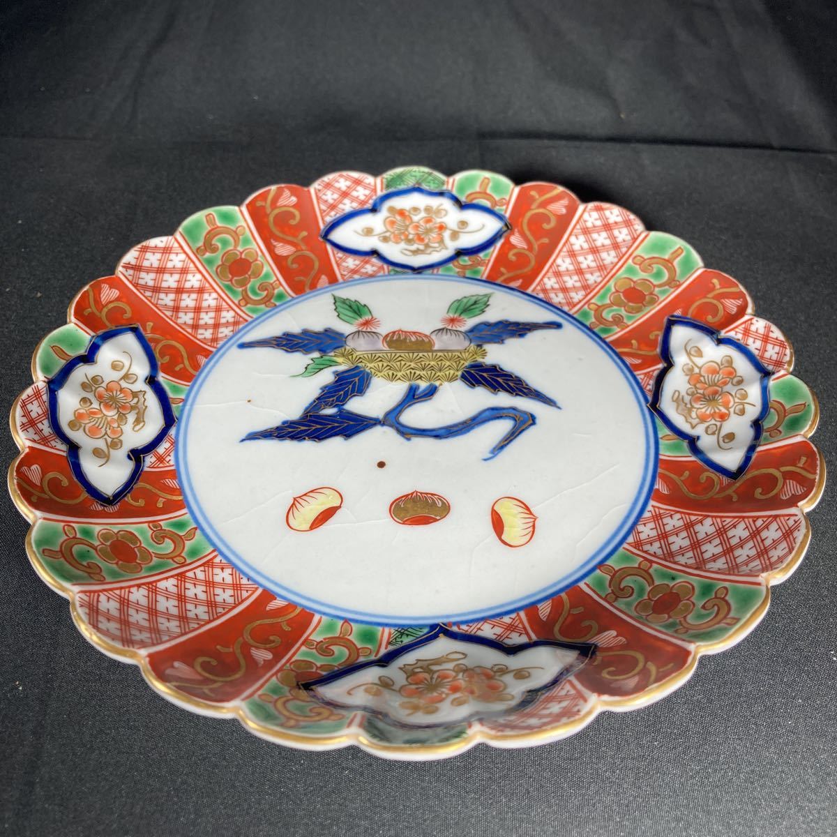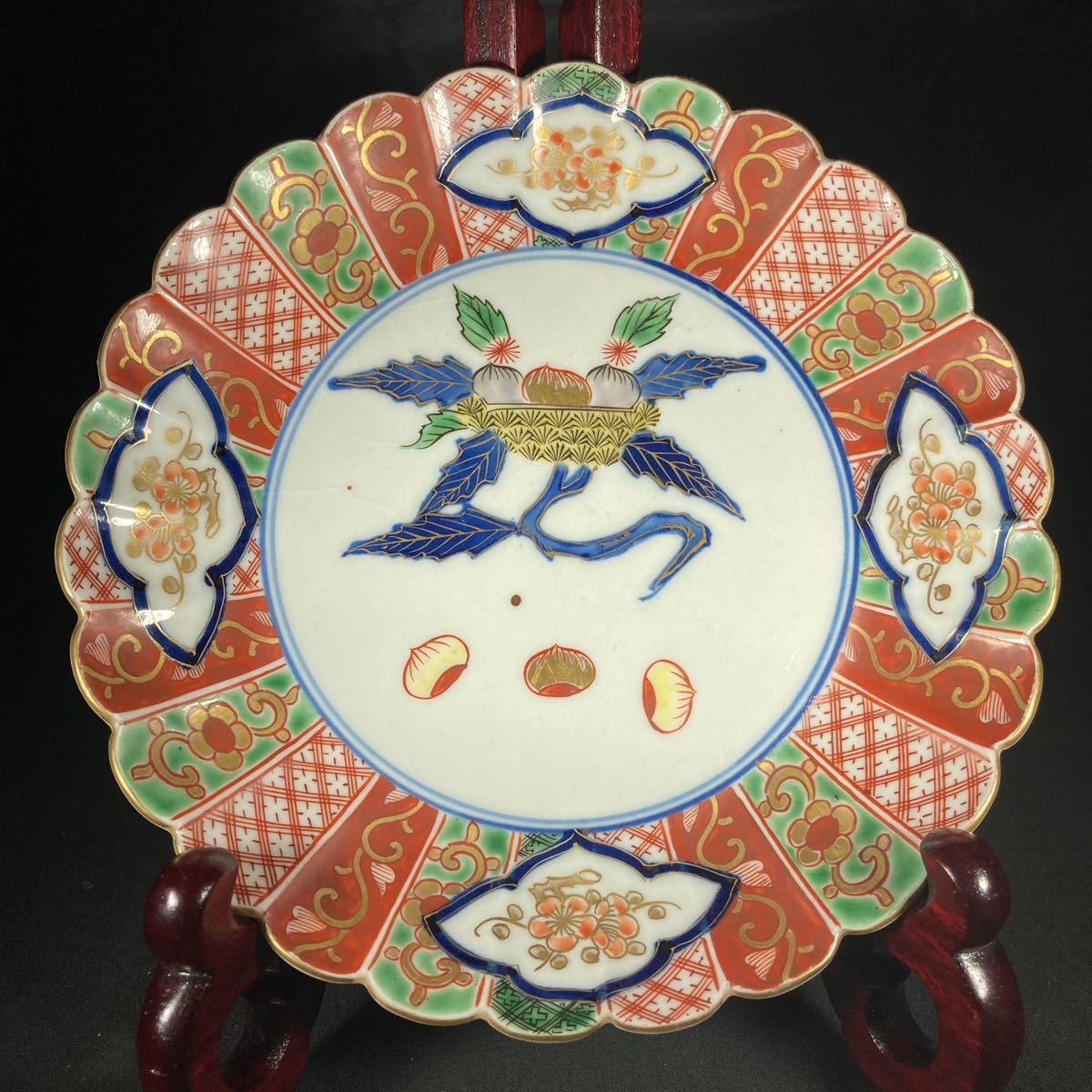 大聖寺伊万里 栗の絵 輪花 色絵[6]888