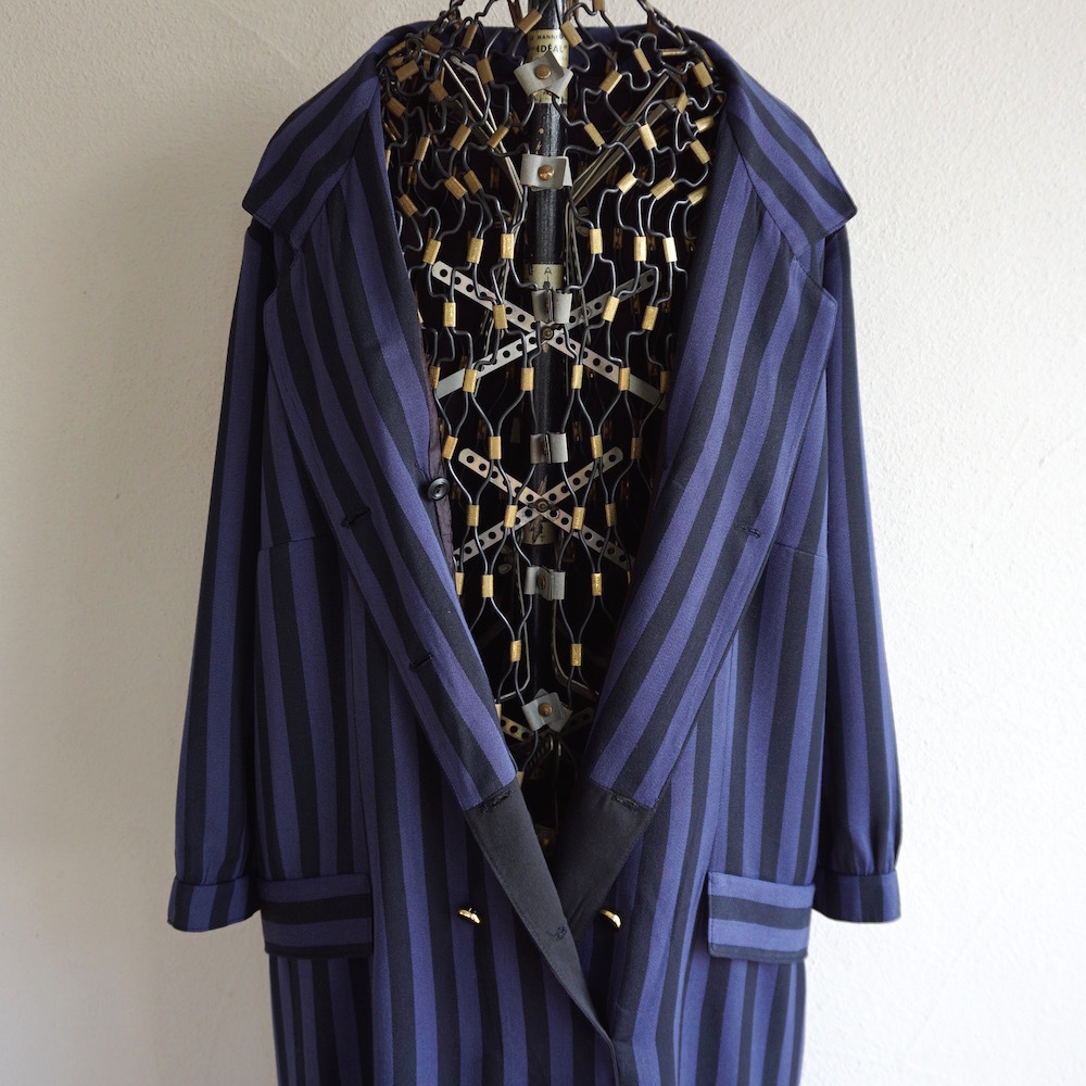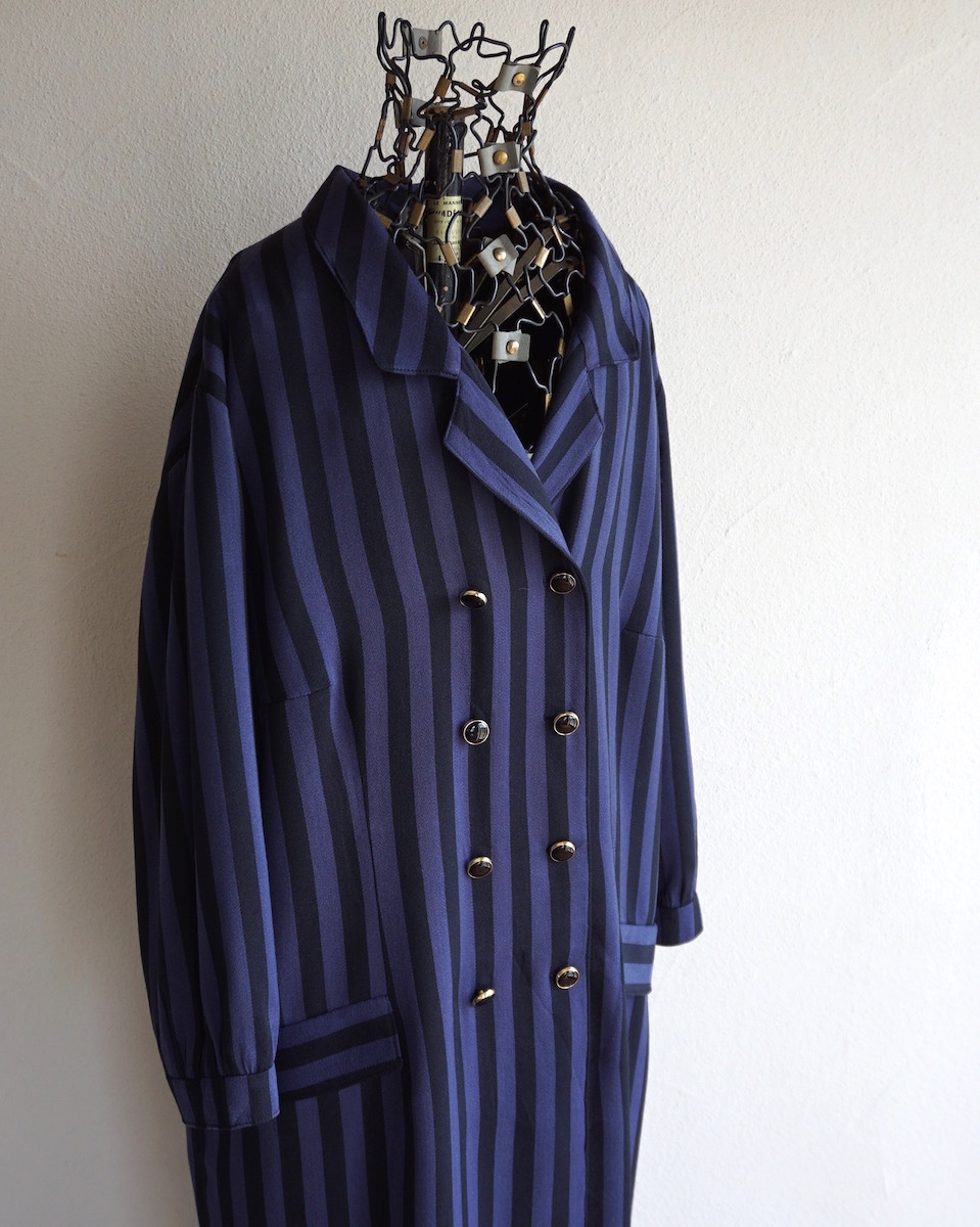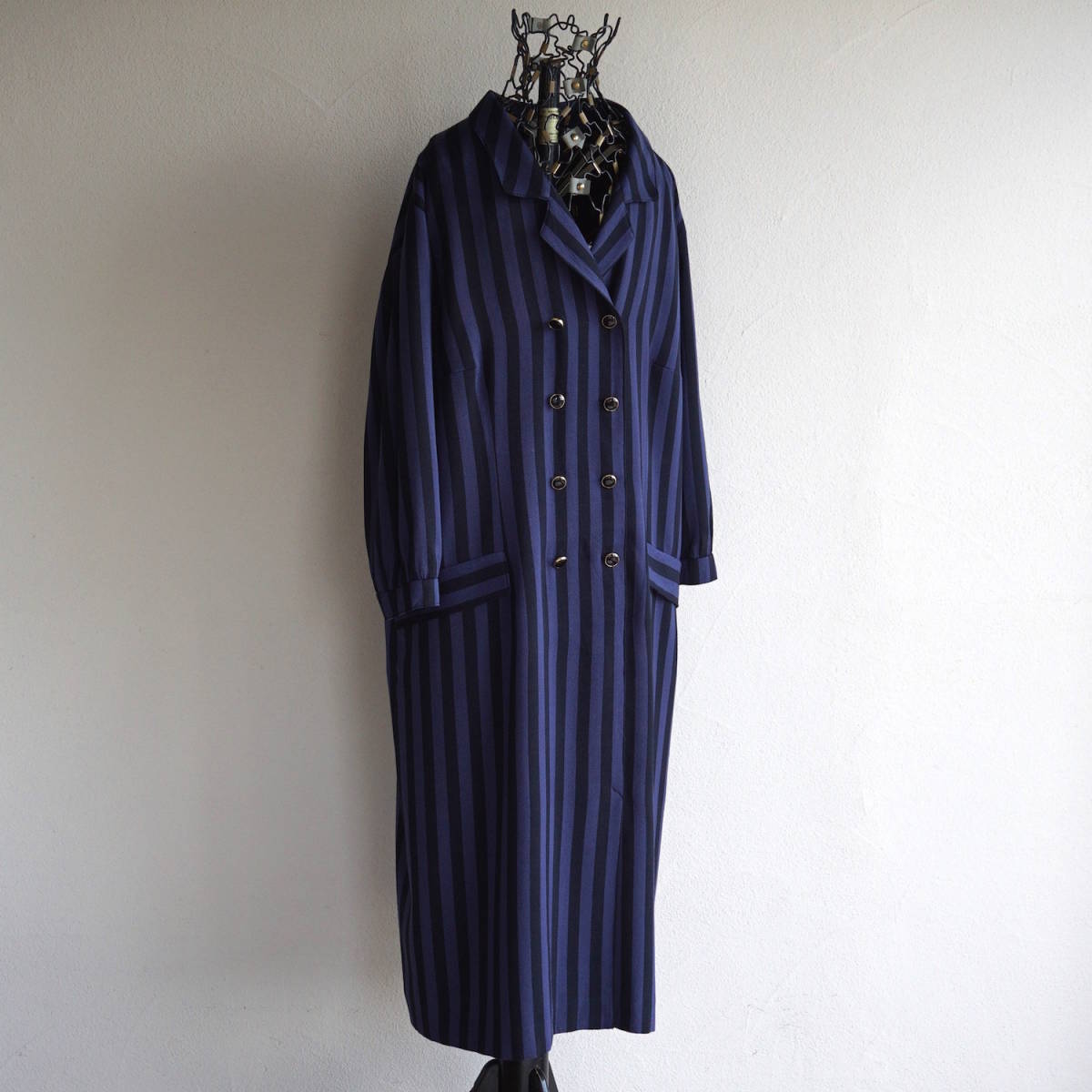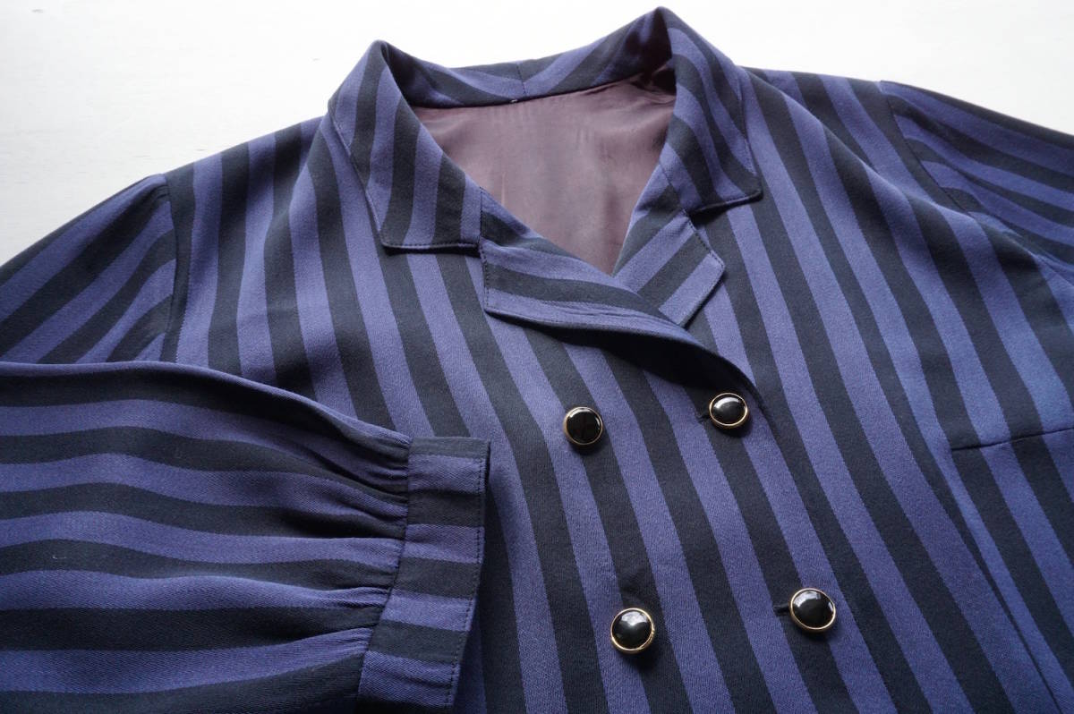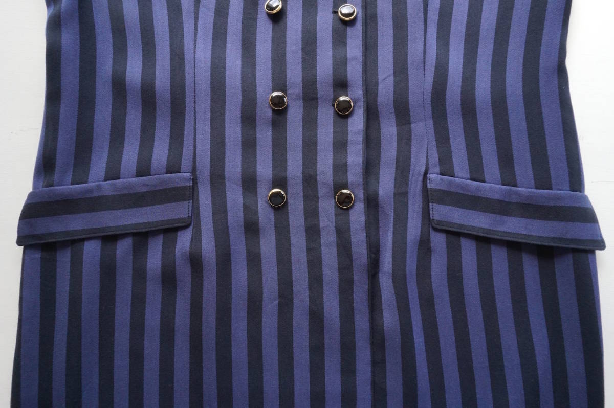 1980s ヴィンテージ ダブルブレスト ブレザーワンピース M位 紺黒 ストライプ / ユーロ ヨーロッパ USA アメリカ 古着