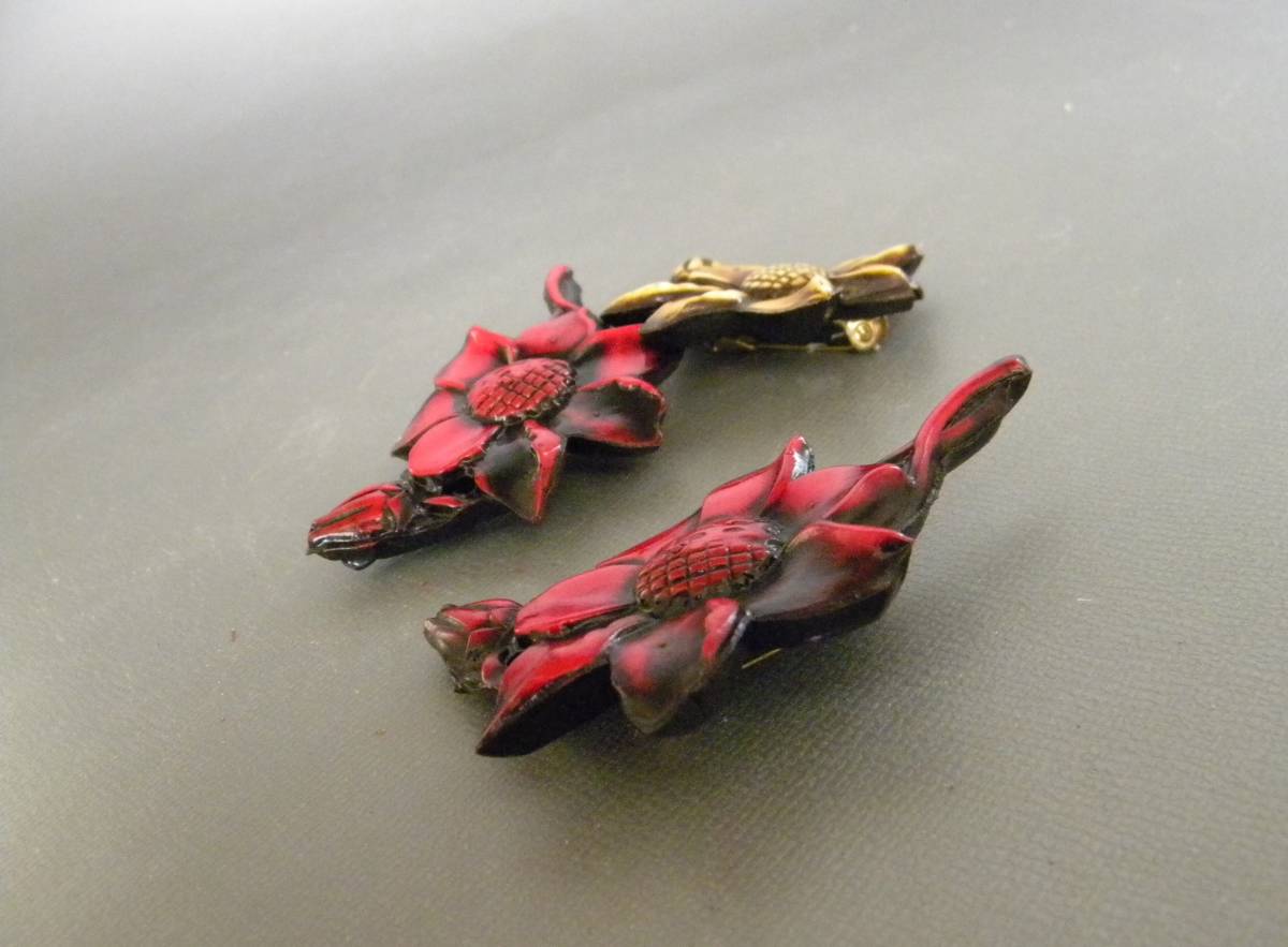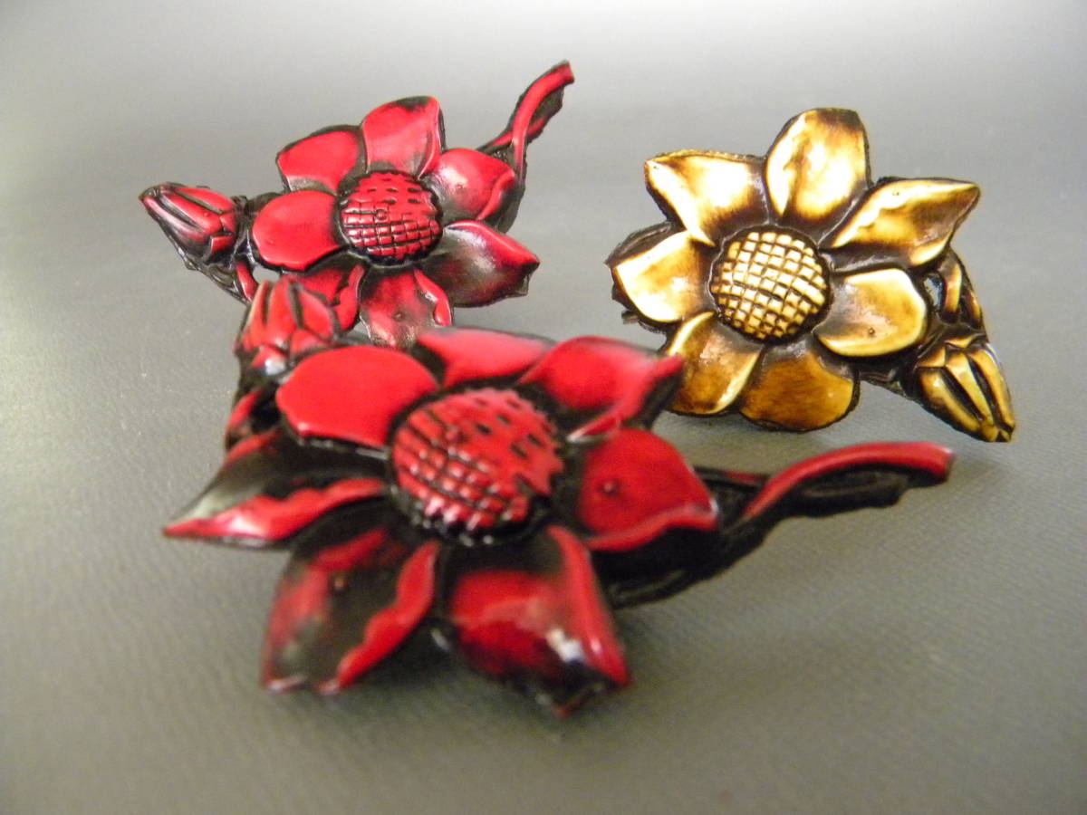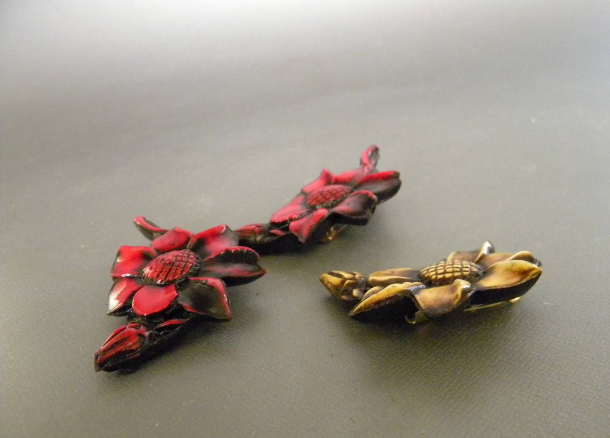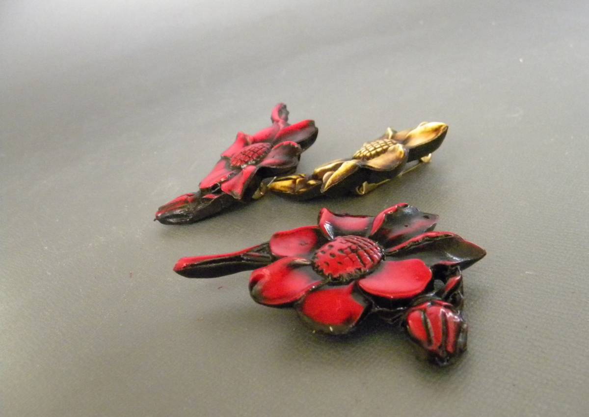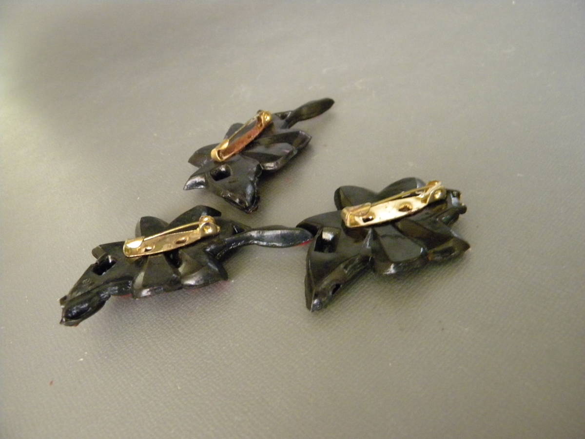 ●当時物 ★★木彫風ブローチ 3点 セルロイド !! 昭和40年代 おしゃれアクセサリー 少女玩具「定形外/LP可」★★未使用 デッドストック品