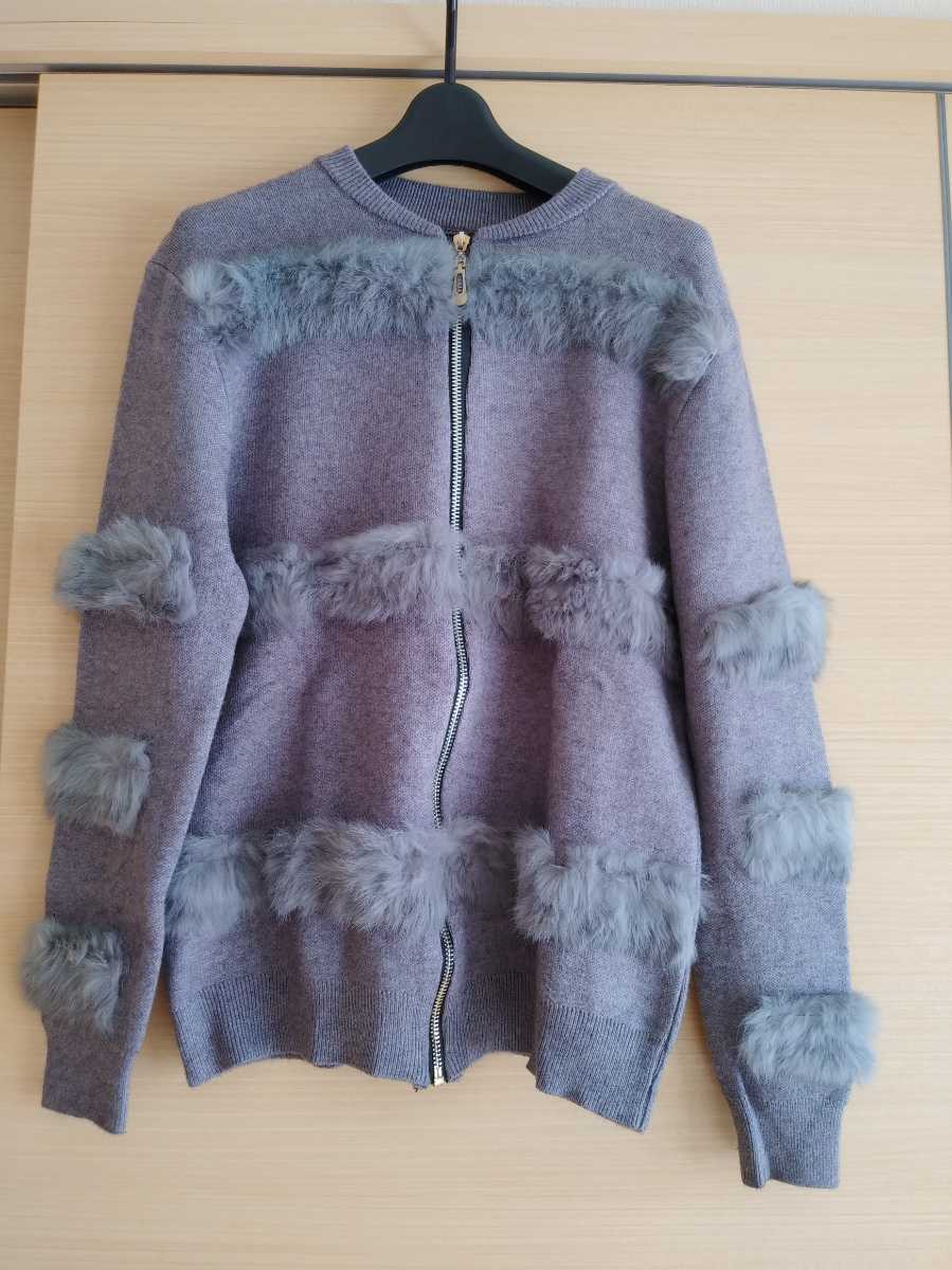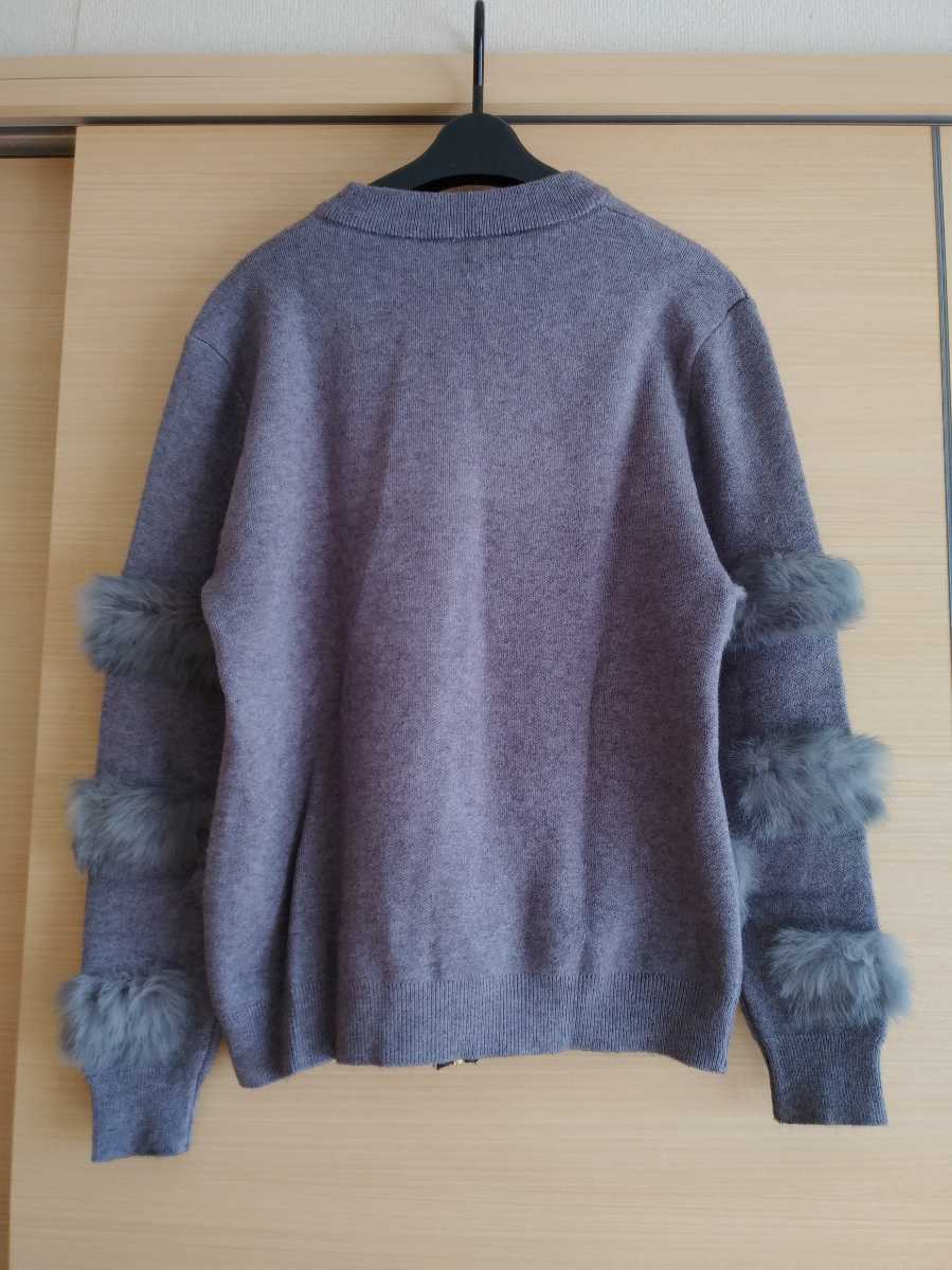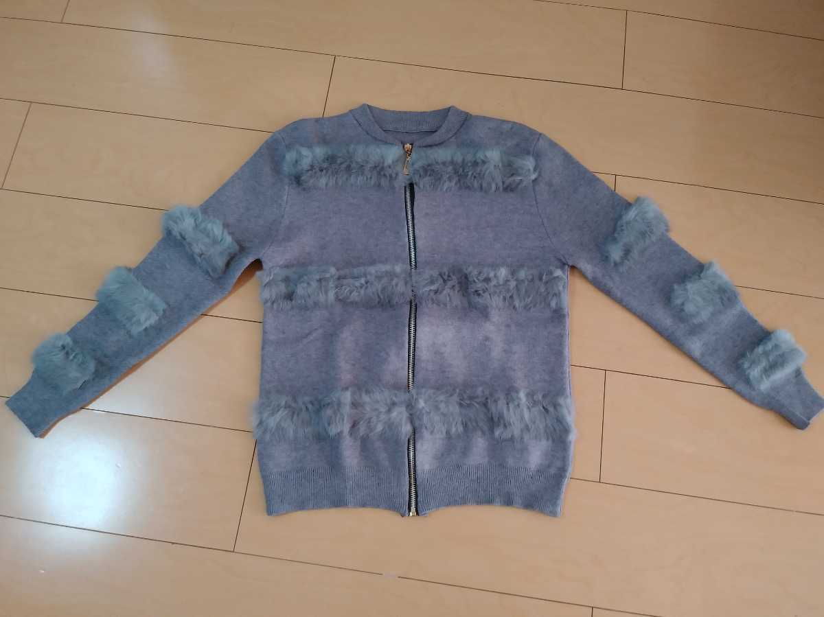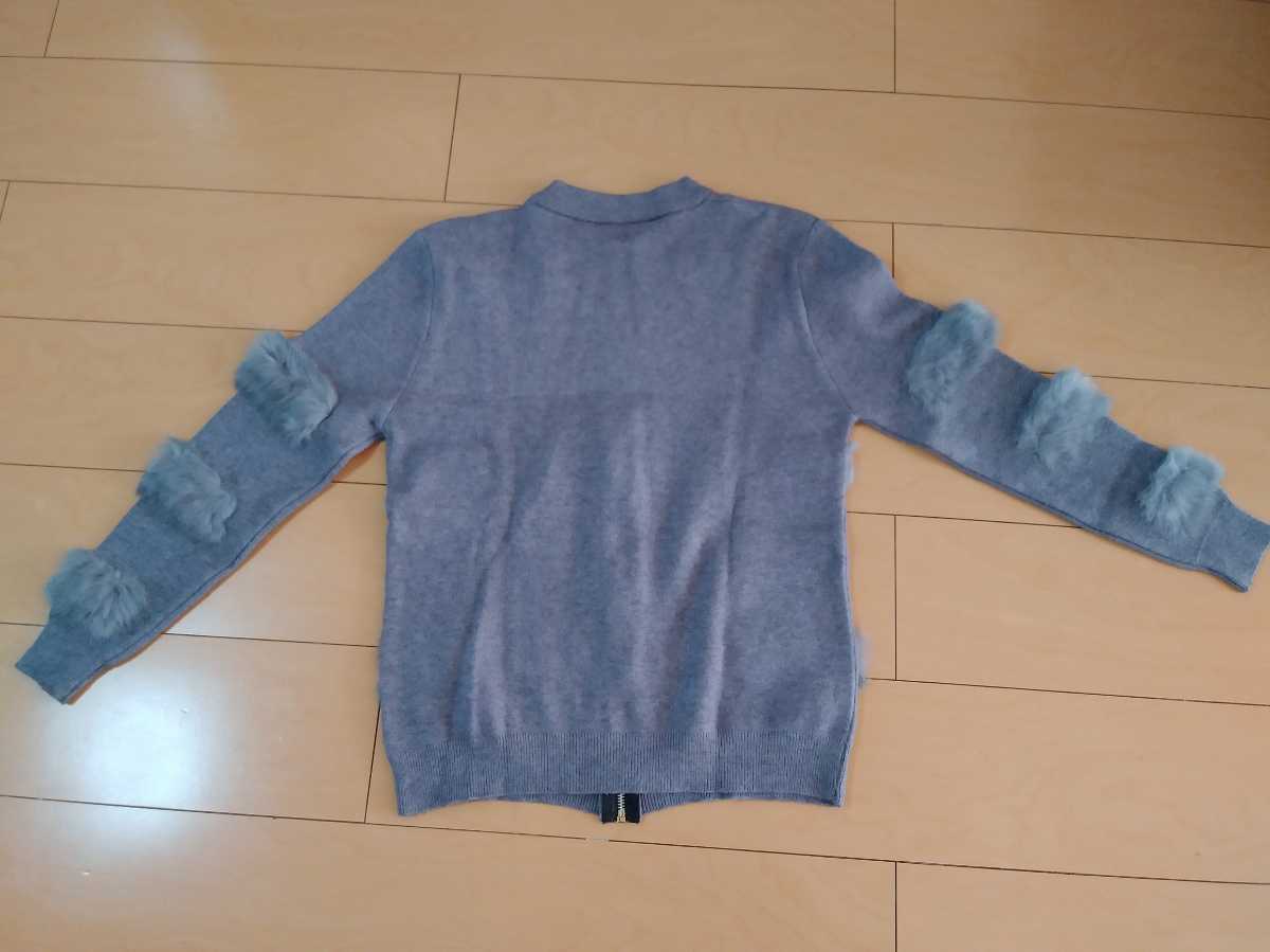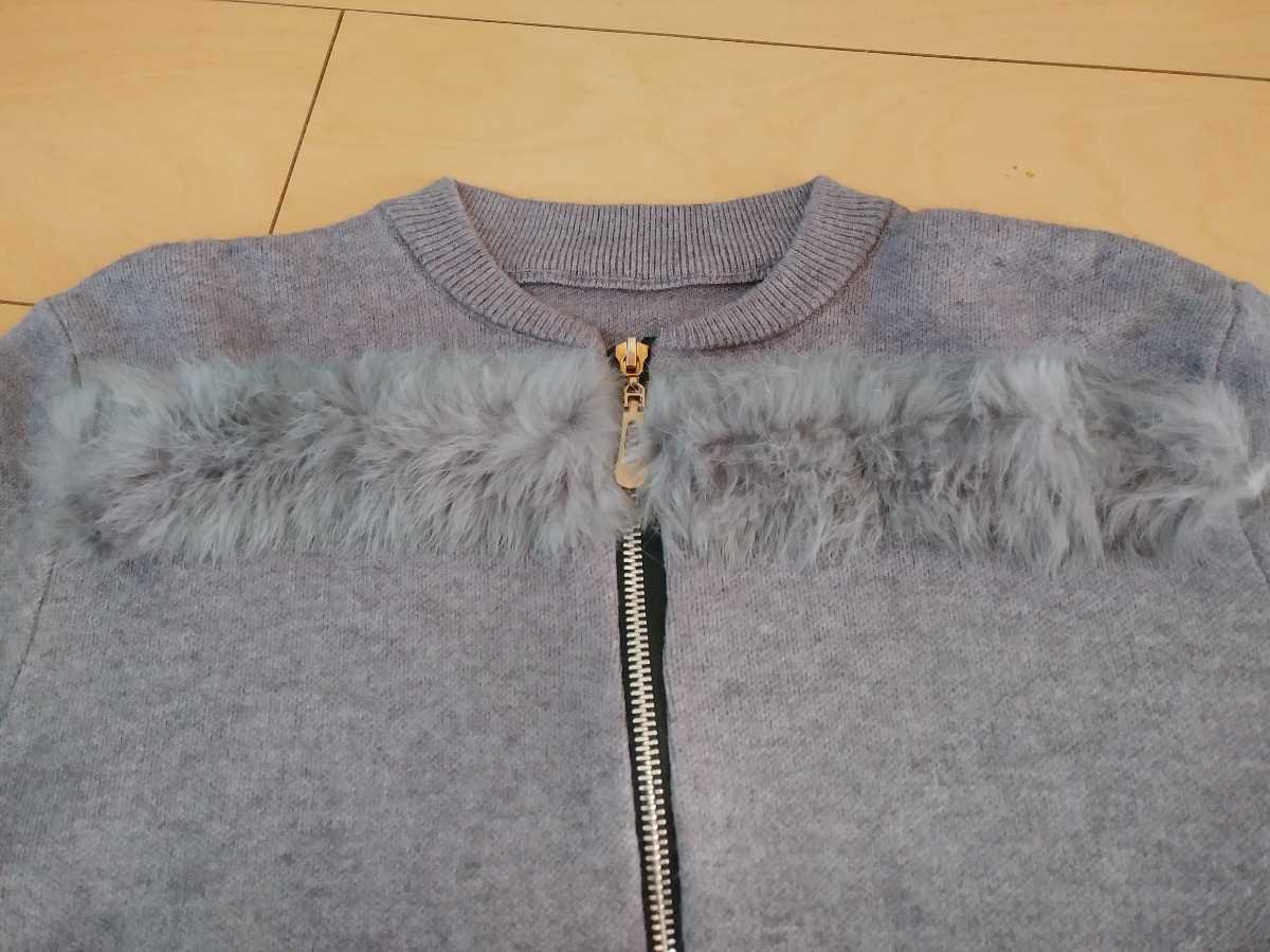 長袖 カーディガン グレー レディース トップス セーター ニット ファー 韓国 M ニットコート