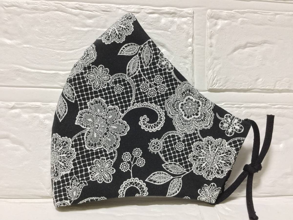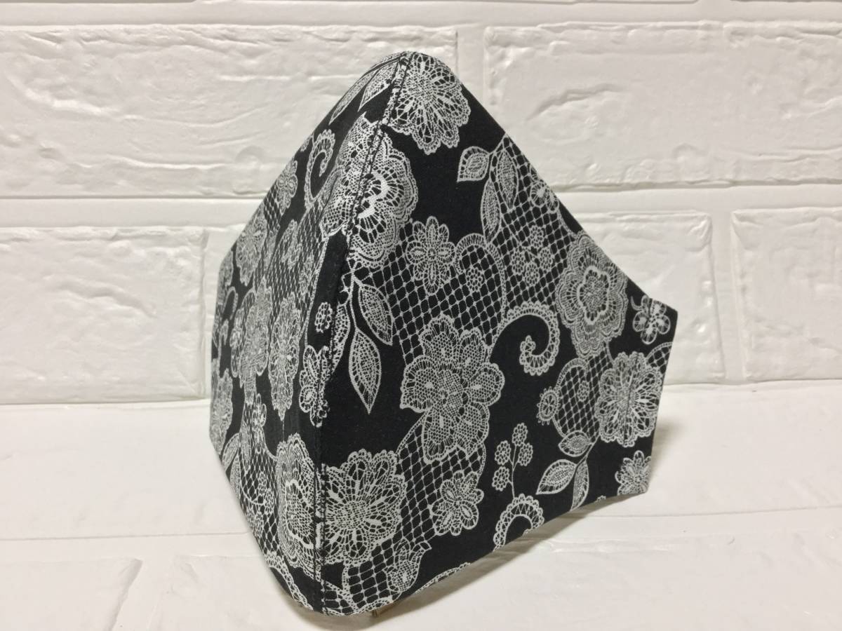 ■ファンデ汚れ解消~♪ レース柄 ブラック 黒 綿2層 stylish 大人用立体インナーマスク ハンドメイド 送料140円♪