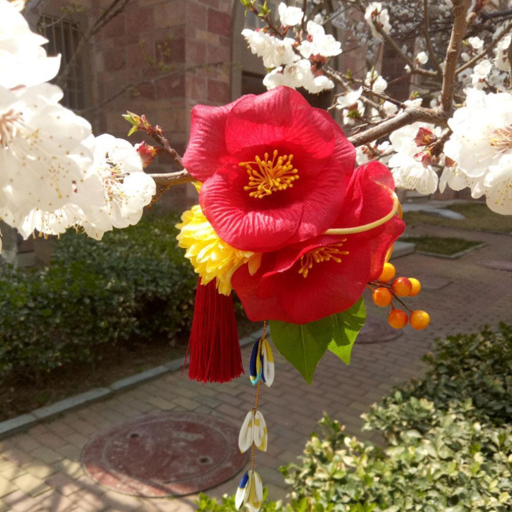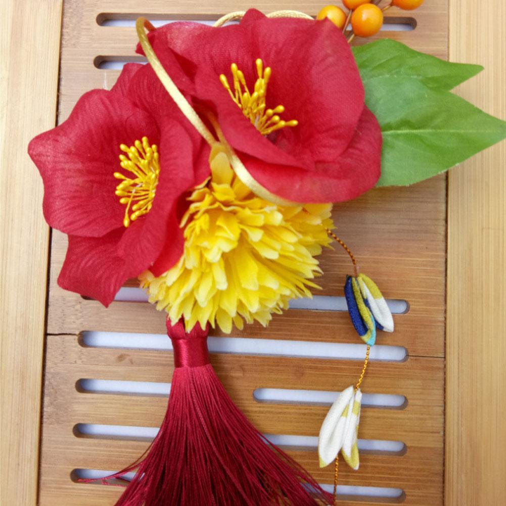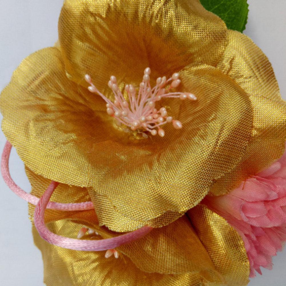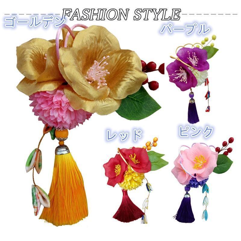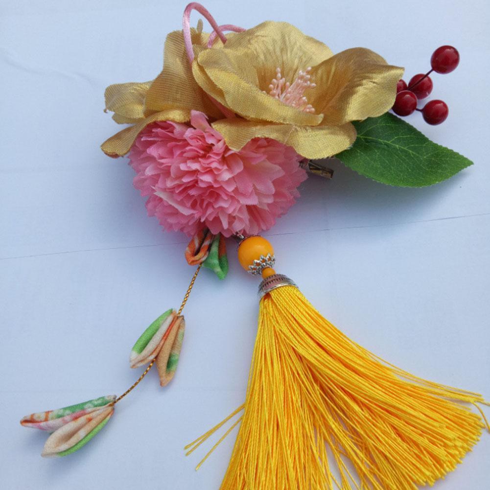 メイン素材: ポリエステル 華やかな模様のリボンに きれいな織り布 が アクセント 。 作り手さんの遊び心を感じるデザインです。 結い上げたヘアアレンジ につけていただくだけで、 着物姿は何倍も華やかになります。 成人式 や結婚式 、 パーティーといった フォーマルシーン はもちろん 浴衣 や 着物 といった日常シーンでもお使いいただけます。お子様の七五三、花火大会、桃の節句 、お正月に華やかなアクセサーリです。 カラー:レッド、パープル、ピンク、ゴールデン