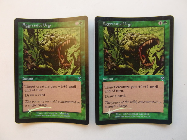 B知人の委託品です。 画像が全てです。 MTG 攻撃的衝動/Aggressive Urge foil 英語2枚 INV です。 何語だか分らない時があります。 エキスパンション、外国語(言葉)は画像で確認をお願いします。 カードはプレイしています。 程度はカードに目立つ擦り傷、キズ、ペン跡のようなキズ、汚れ、角や端に傷、黒枠にキズ、などのキズが結構あります。 スリーブに入れないでストレンジボックスに保管してたので擦り傷が沢山あります。 カードからタバコや香水の匂いがします。 カードが大きく丸まっていたり反ってたりしています。 気が付かない部分がありますので程度を気にする方は入札をご遠慮下さい。 程度はジャンクです。 コレクションには向きません。 何か起きた場合には自分では対応が出来ませんのでご理解頂ける方のみ入札をお願いします。 普通郵便で発送します。 郵便事故や郵便破損が起きた場合には保障できません。 ノ-クレーム、ノーリターンでお願いします。