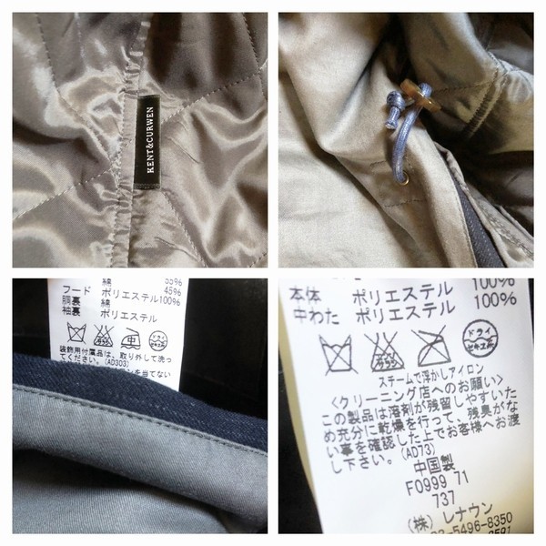 本体 表地 毛 55% 綿 45% フード ポリエステル 100% 胴裏 綿 袖裏 ポリエステル ライナー部分 本体 ポリエステル 100% 中わた ポリエステル 100% レナウン取り扱い |