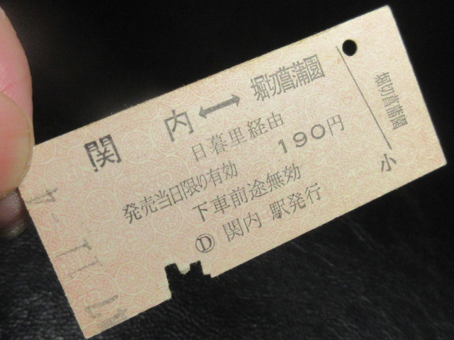 ~ ★国鉄乗車券・硬券『昭和47年11月4日・関内←→堀切菖蒲園・190円・矢印式乗車券』キップ切符・昭和レトロ・レアコレクション★JNR1849 ~