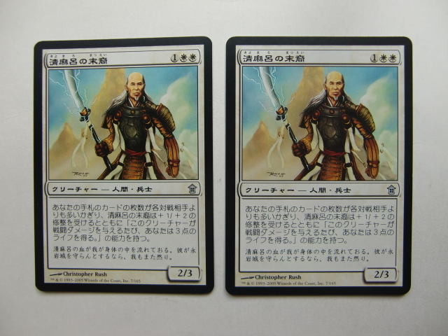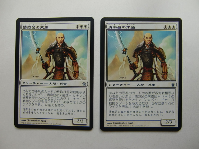 B知人の委託品です。 画像が全てです。 MTG 清麻呂の末裔/Descendant of Kiyomaro 日本語4枚です。 何語だか分らない時があります。 エキスパンション、外国語(言葉)は画像で確認をお願いします。 カードはプレイしています。 プレイ後、カードはスリーブから出してストレンジボックスの中で保管していました。 カードに目立つ擦り傷、キズ、ペン跡のようなキズ、汚れ、角や端に傷、黒枠にキズ、などのキズが結構あります。 スリーブに入れないでストレンジボックスに保管してたので擦り傷が沢山あります。 カードからタバコや香水の匂いがします。 カードが大きく丸まっていたり反ってたりしています。 気が付かない部分がありますので程度を気にする方は入札をご遠慮下さい。 程度はボロ、ジャンクです。 コレクションには向きません。 何か起きた場合には自分では対応が出来ませんのでご理解頂ける方のみ入札をお願いします。 普通郵便で発送します。 郵便事故や郵便破損が起きた場合には保障できません。 ノ-クレーム、ノーリターンでお願いします。