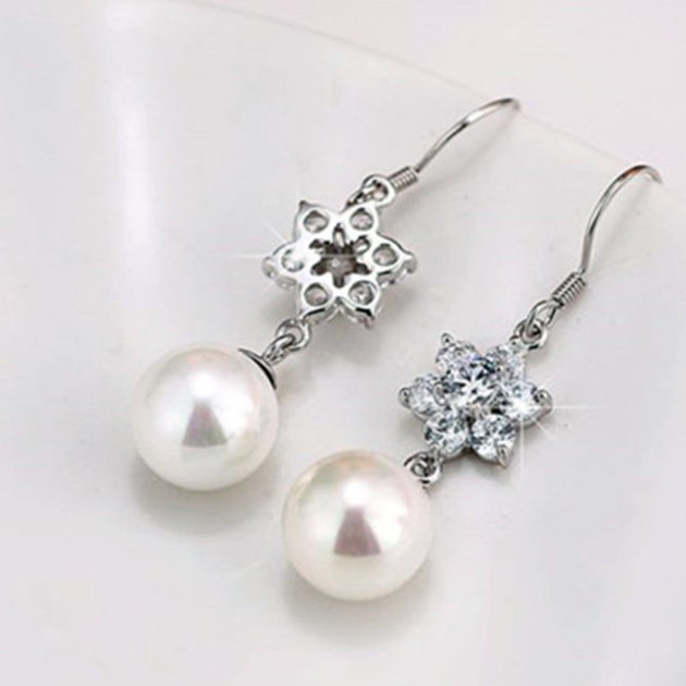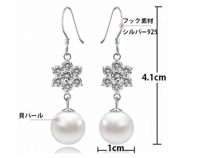 ●フック素材 :シルバー925(刻印あり)。プラチナ仕上げ。●雪の花ピアス台素材:真鍮、プラチナ仕上げ。●ストーンド素材:キュービックジルコニア。●貝パール素材:天然貝殻素材、人工真珠 。