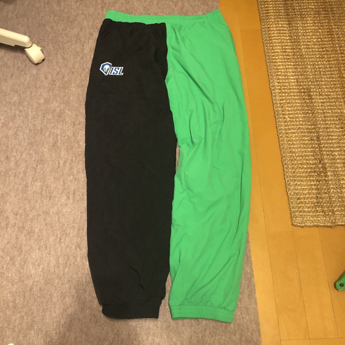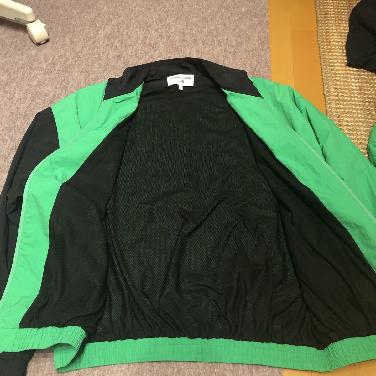 NATASH ZINKO for ISL 特にダメージや目立つ汚れございません。多少の使用感ございます。サイズ 表記XL 上着 実寸 平置き 肩幅 67センチ 身幅79センチ 着丈 73センチ ボトム ウエスト 実寸最長94センチゴムですので伸ばして計測 股下77センチ 色 黄緑×黒 素材ナイロン 定価はかなりする品物です。