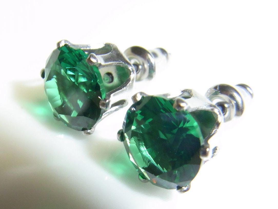 4.8ct 大粒8ミリ 高品質 新型 模造エメラルド ピアス 316ステンレス製 | |||
