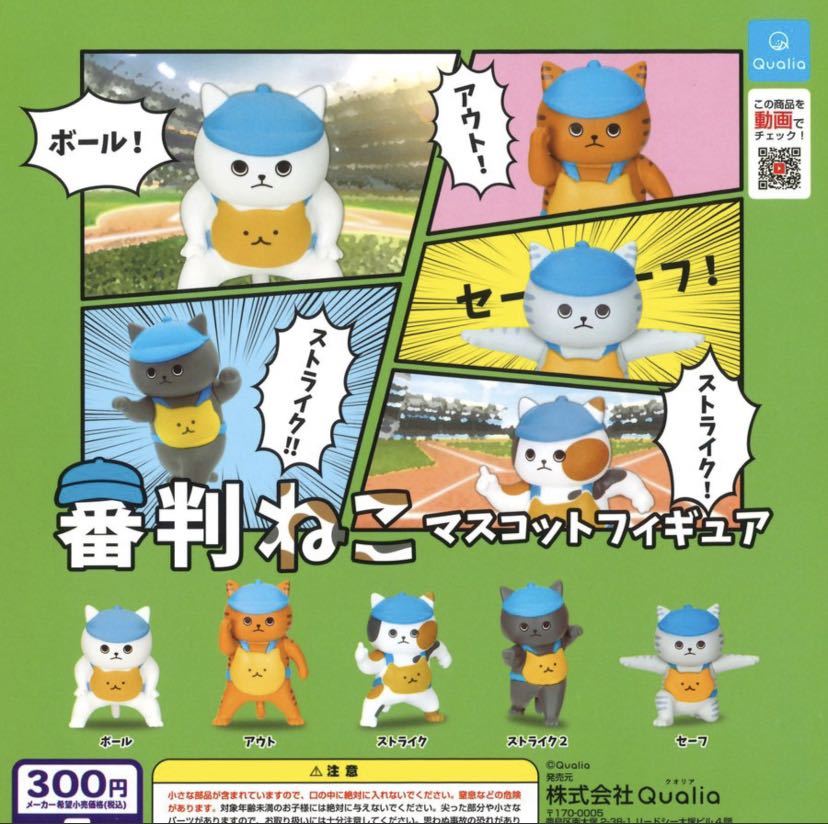 ★猫スポーツミニチュア★審判ねこマスコットフィギュア ガチャガチャ アウト