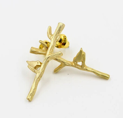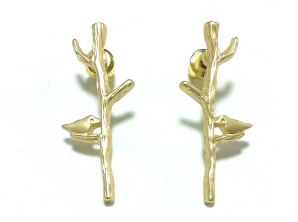 小枝に乗った小鳥のペアピアス ゴールド /鳥グッズ インコグッズ