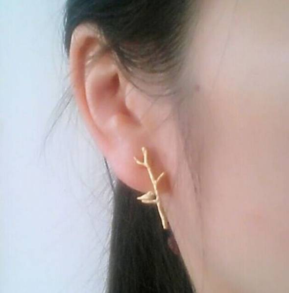 素朴で繊細な小さな小枝に小鳥がちょこんと乗ったピアス。