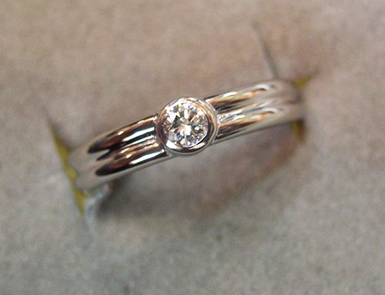 【総重量=4.8g・最大巾=3.43㎜・最小巾=3.16㎜・最大厚=2.98㎜・現状サイズ=【9.5号】(リング中央に一周ミゾが彫られていますので、通常はサイズ直し出来ませんが、直し箇所のミゾが消えても良ければ、8号~13号まで実費でお受けします。)】