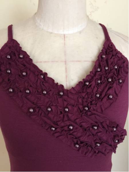 胸にはフリルとワインカラーの真珠風ビーズがついていて豪華です。サイズはMです。ほとんど着ていませんが、自宅保管の為ノークレームノーリターンでお願いします。