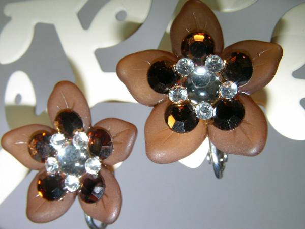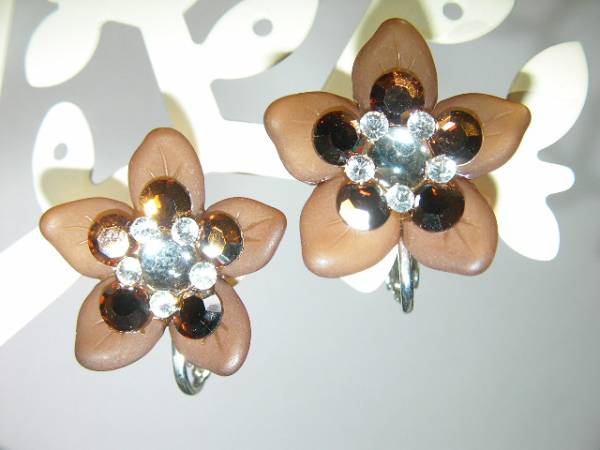 655♪お花 デザイン キラキライヤリング検茶系カジュアルサイケ