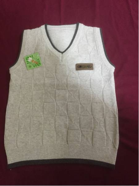 ライトグレーベースにネックと裾にダークグレーの織り柄入りです。