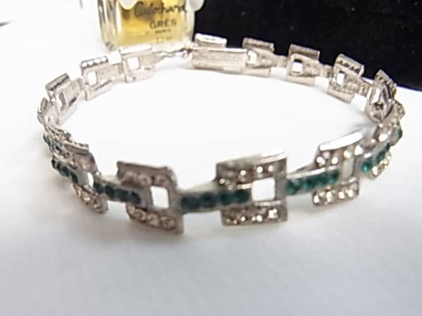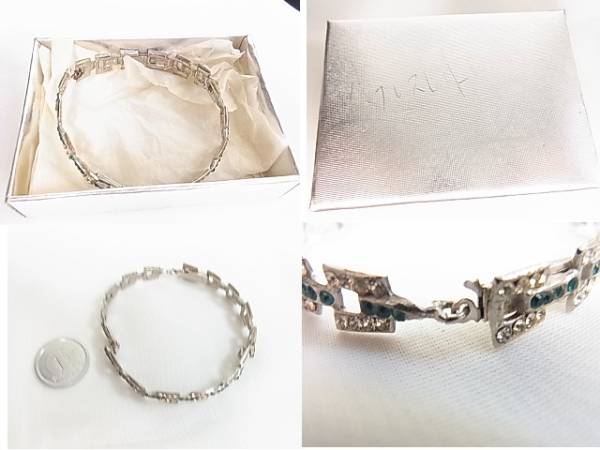 透明と緑のラインストーンが輝く☆箱あり ブレスレット◆