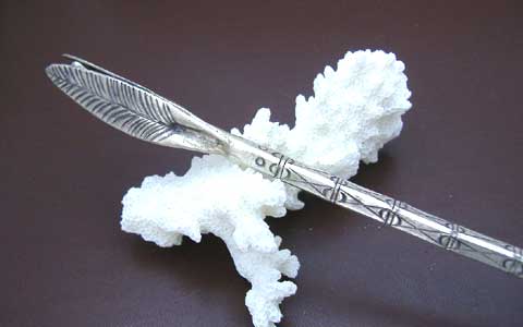 | タイ北部に住む山岳民族カレン族のシルバーかんざしです。 カレン族シルバーの純度は925からそれ以上と非常に高い純度で、1つ1つ丁寧にハンドメイドで作られております。 かんざしトップのデザインが個性的です。 まとめ髪にいかがでしょうか。 ●長さ:約20㎝(トップも含む) ●トップ:約4.5cm×1.2cm |