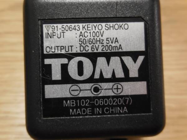| TOMY ACアダプター MB102-060020 中古品です。 中古品です。 使用感、傷、汚れがございますのでご了承ください。 通電確認しました。 箱、説明書その他の物は付属しません。 | ||