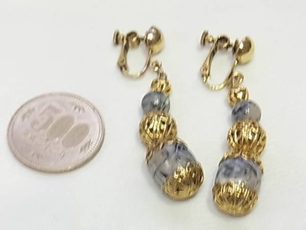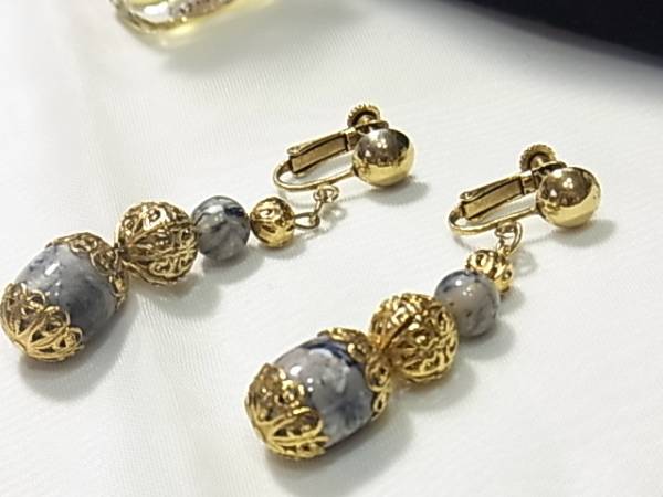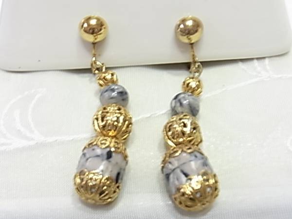 オリエンタル調★柄入りのビーズストーン 揺れるイヤリング♪