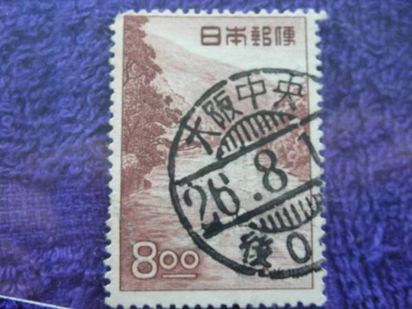 消印 観光 宇治川 8円 櫛形 大阪中央 26.8.1