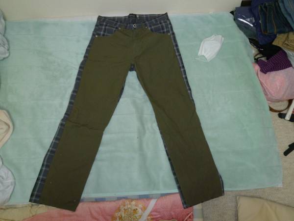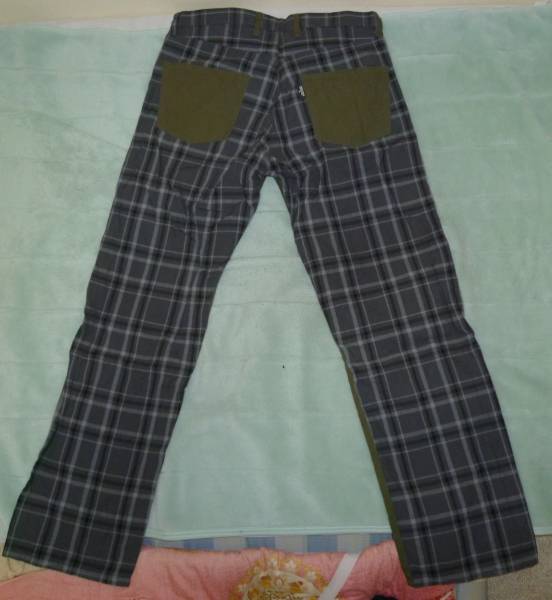 gigglyroyらしく大変デザイン性の高いパンツになり、大胆にカーキーとグレーのチェックを切り返したパンツになりインパクト抜群です。